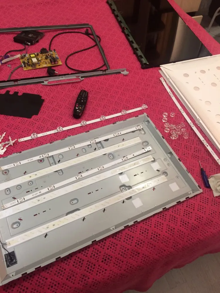 Доставка 4 дня, привёз курьер. Когда разобрали телек LG, оказалось, что работала только 1 лампа из 18. Ещё и лампочки были на пластмассовой подложке. Поставили новую подсветку (все лампы на алюминиевой подложке, имеется липкая лента для крепления), работает все отлично! Я шоке, что телевизор такой яркий! Короче, подсветка супер!