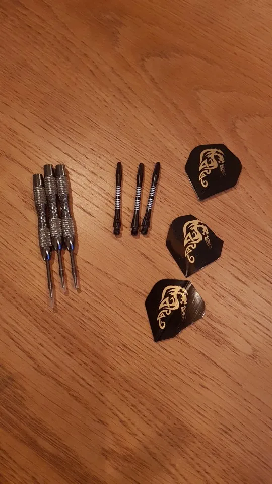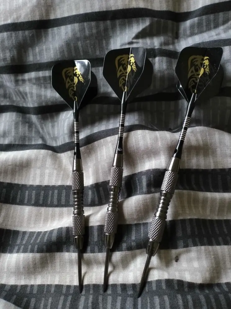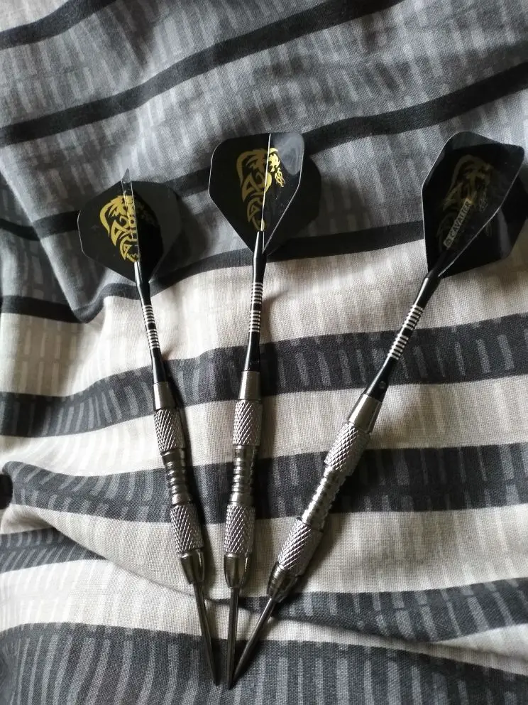 Доставка - нормально. за такую цену дротики офигенные, может чуть легковаты. Вполне конкурируют (и для меня даже в предпочтительнее) моих основных Target Alan Tabern steeltip 23gr (вольфрам брал за 2800р (примерно 40$) в 2015 году. Главное преимущество для меня - хват. С такой формой контроль четче и проще. Приложил фотки пары удачных бросков, и сравнения.