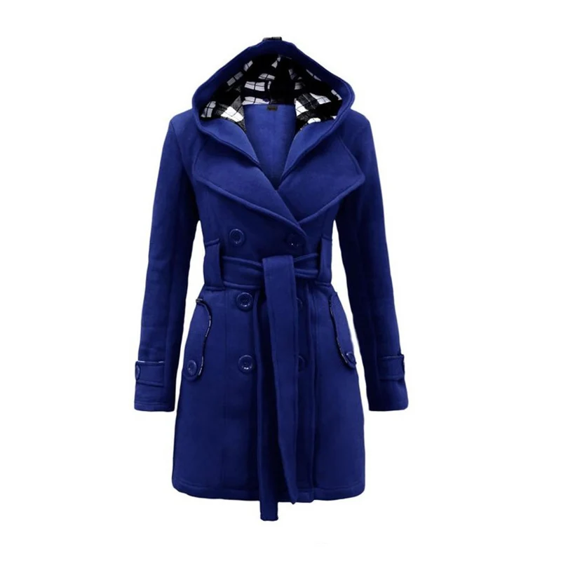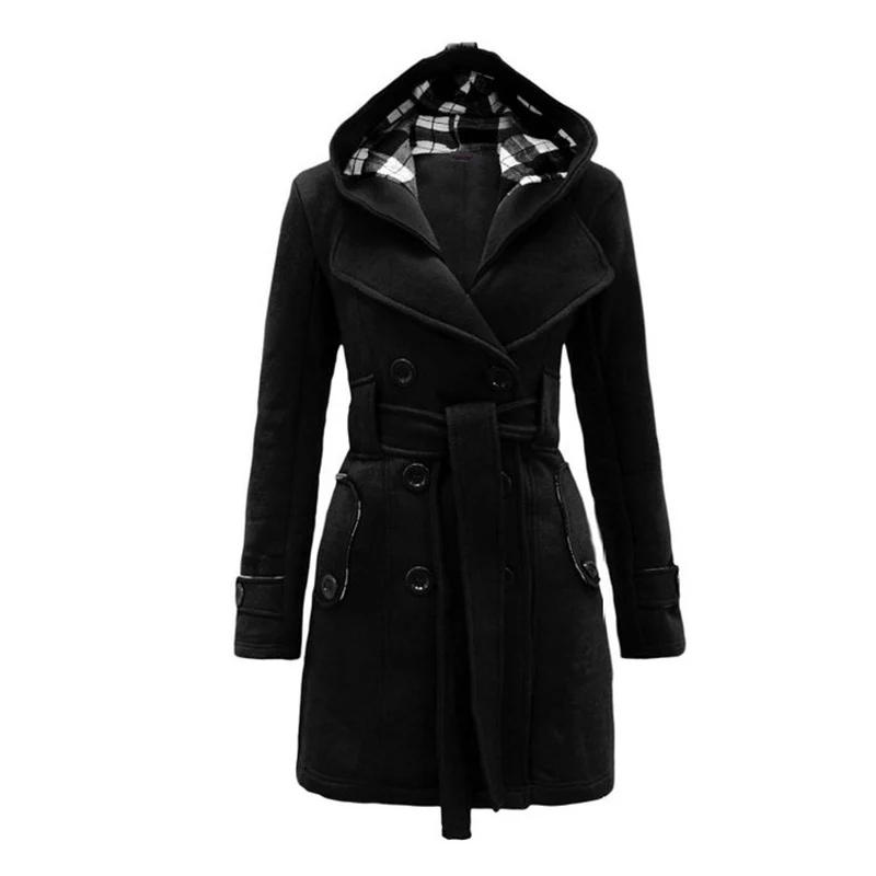 Пальто женское осенне-зимнее из искусственной шерсти, с капюшоном