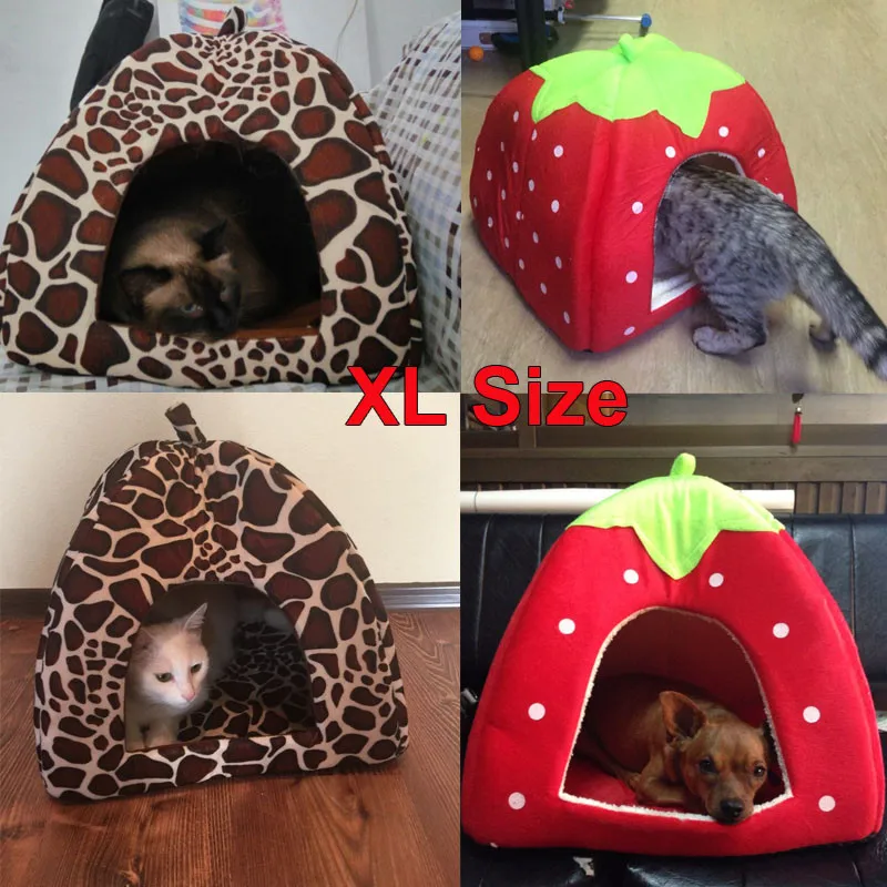 Теплая мягкая кровать для маленьких и средних собак, леопардовая, Клубничная, складная кровать для хомяка, пещера, щенка, собаки, питомник, товары для домашних питомцев