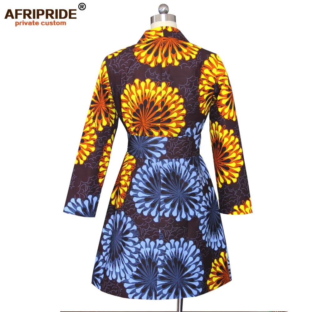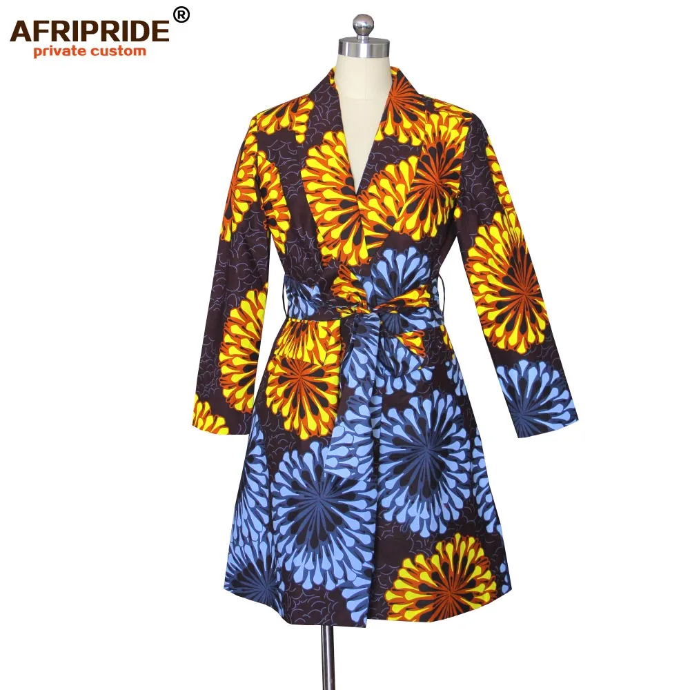 Африканская Осенняя женская повседневная куртка с длинным рукавом и отложным воротником до колена с бантом и поясом из чистого хлопка AFRIPRIDE A722418