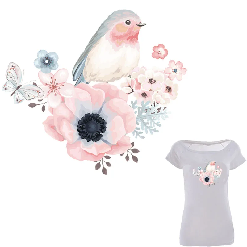 Патчи для одежды Colife с птицами, моющиеся железные аппликации a-уровня с цветами для самостоятельной сборки одежды, 19*19 см, теплопередача