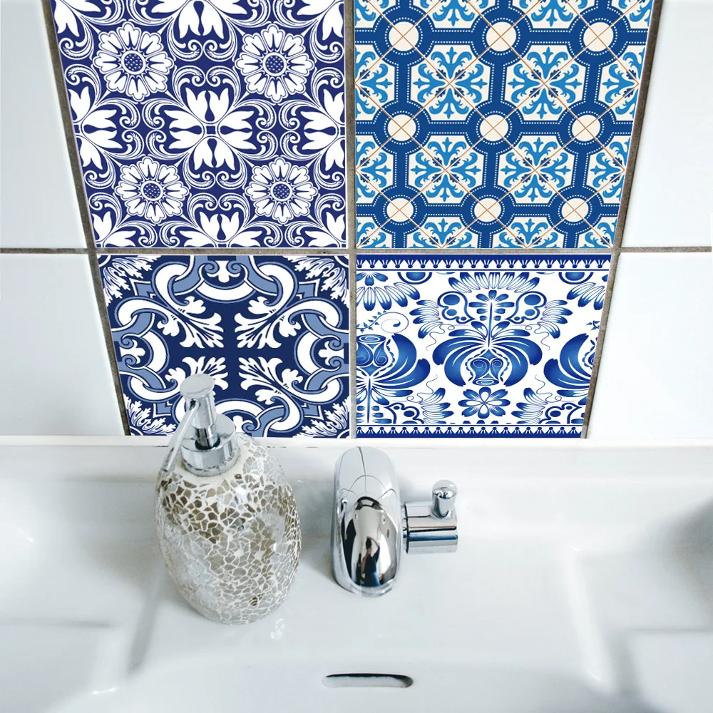 Funlife сине-белые винтажные фарфоровые наклейки для плитки, водонепроницаемые наклейки для ванной комнаты, настенные наклейки для кухни, Ретро Декор для дома