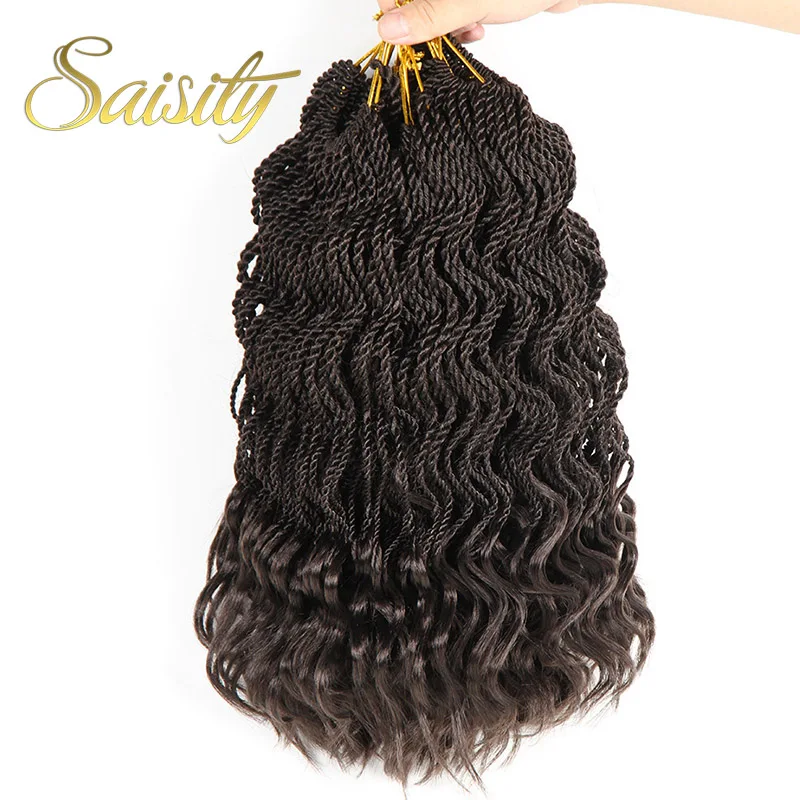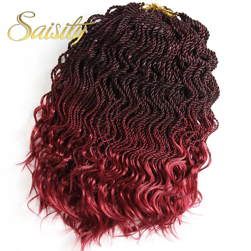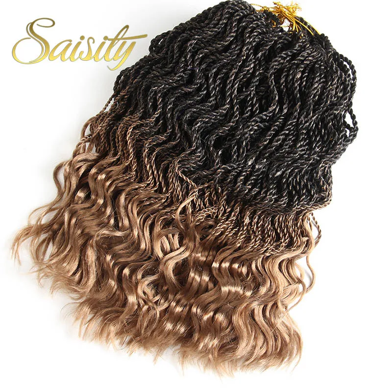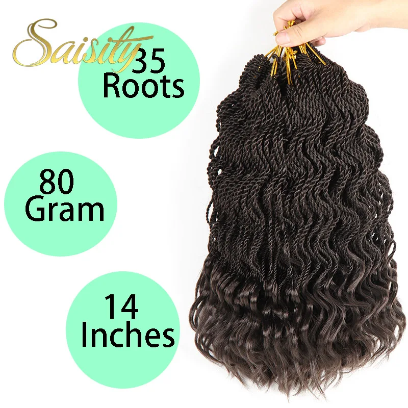 Сенегальские плетеные волосы с эффектом омбре, косички для вязания крючком, синтетические косички для вязания крючком, 14 дюймов, 35 прядей/упаковка, кудрявые концы