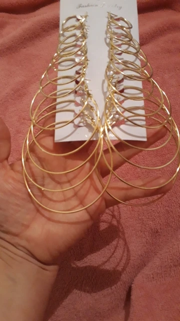 Очень красивые серьги, но на картинке выглядят больше, чем в жизни. У некоторых колечек неудобные застёжки, но в целом, не выглядят дешево. Довольно миниатюрные и милые) За такую цену отличное качество.