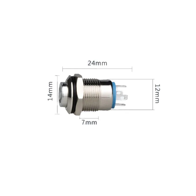 1 шт. 12 мм самосброс, высокая круглая Водонепроницаемая мгновенная металлическая кнопка из нержавеющей стали, красная, синяя, зеленая, желтая, белая