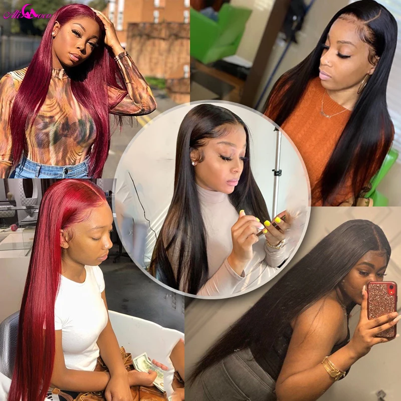 Прямые человеческие волосы Ali Coco 28, 30, 40 дюймов, пучки с застежкой на шнуровке, бразильские прямые волосы, пучки с закрытием 5 Х5, волосы без повреждений