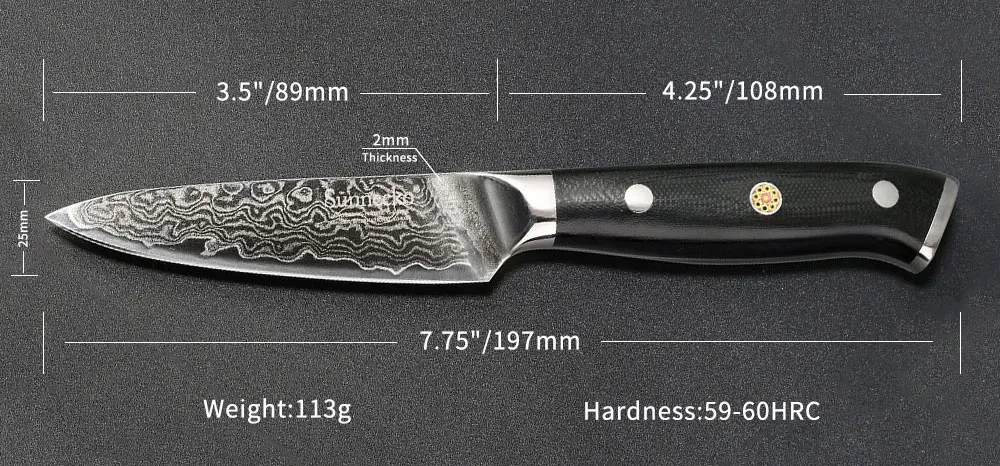 -3,5 дюймов нож для очистки овощей Ножи: Ножи Weight-113g, лезвие Длина-3,5 ''/89 мм, Ножи Длина-7,75''/197 мм, лезвие Thickness-2mm