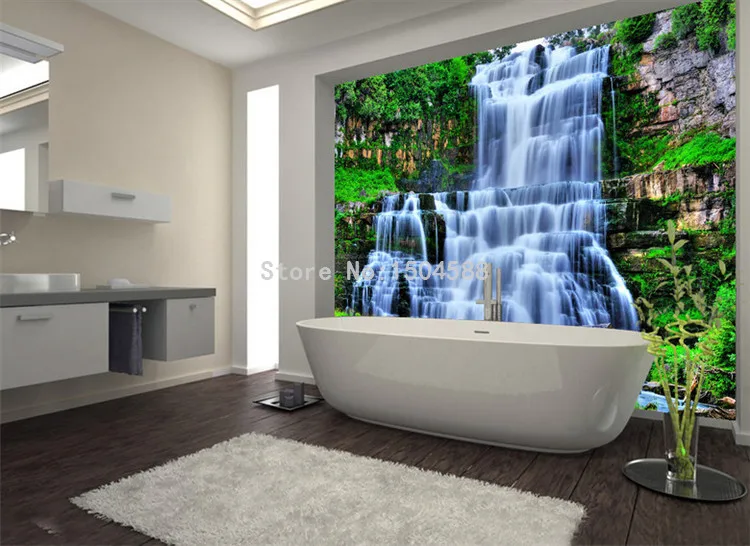 Самоклеящиеся настенные 3D обои для ванной, водостойкие ПВХ обои с водопадом