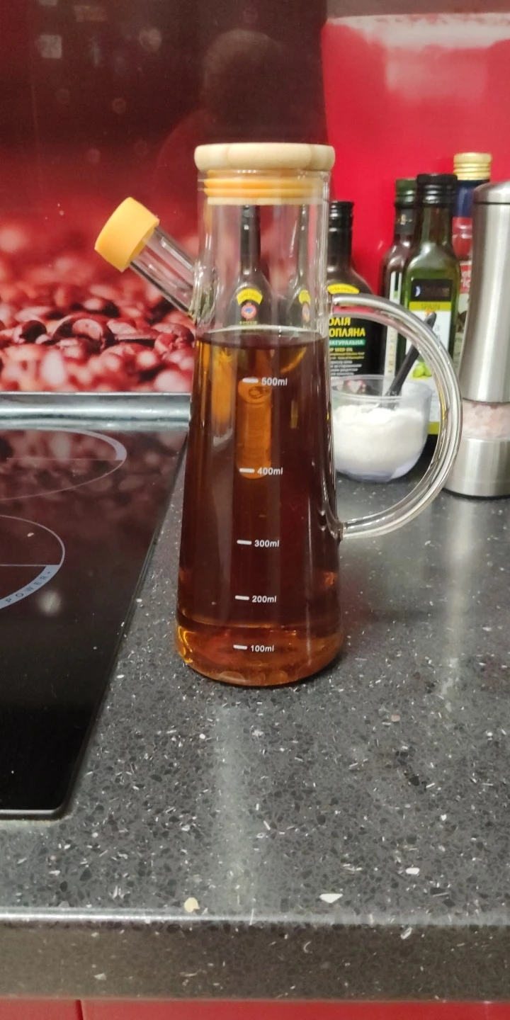 Быстрая доставка. Хорошая бутылка для масла. Но стенки сосудов очень тонкие. Я не рекомендую покупать.