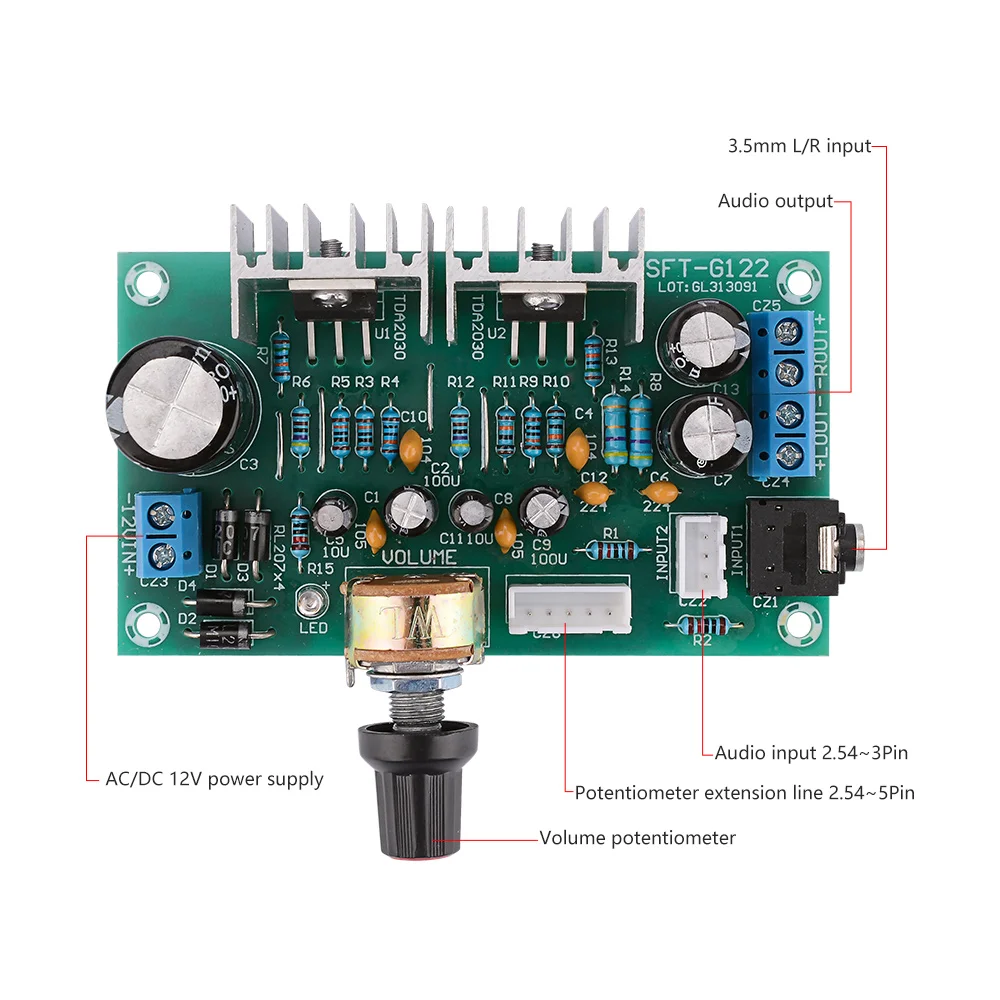 Усилитель мощности AIYIMA TDA2030, аудио Плата 2,0, двухканальный усилитель звука 15 Вт + 15 Вт, домашний мини-усилитель, домашний кинотеатр сделай сам