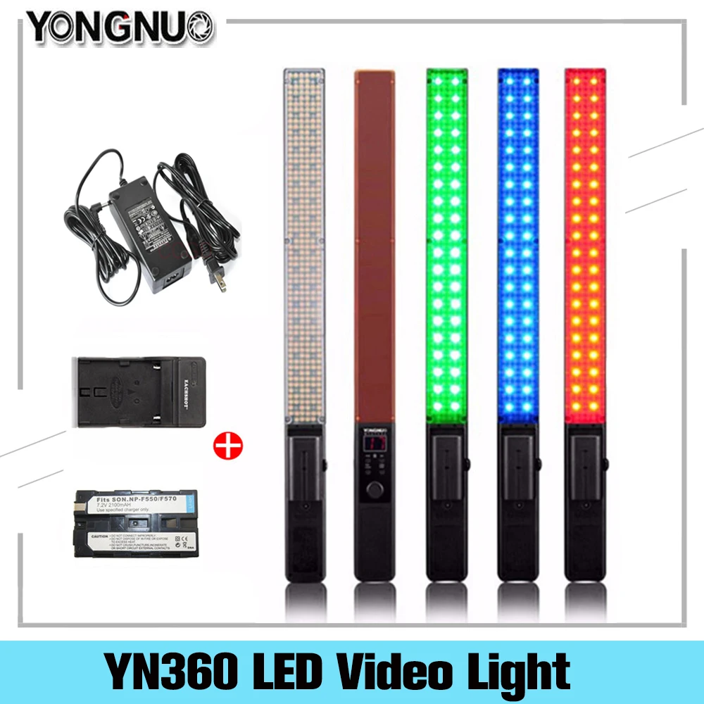 Ручной светодиодный светильник YONGNUO YN360 для видеосъемки, освещение для фотосъемки 3200k-5500k RGB, цветовая температура + набор аккумуляторов (опционально)