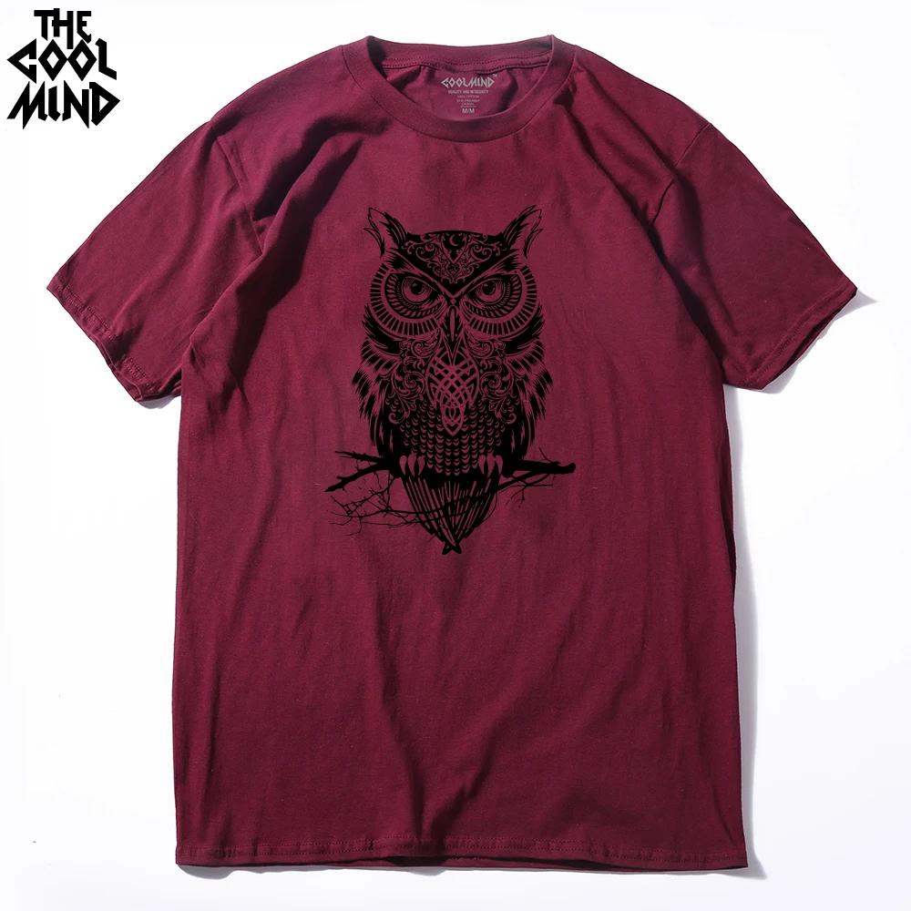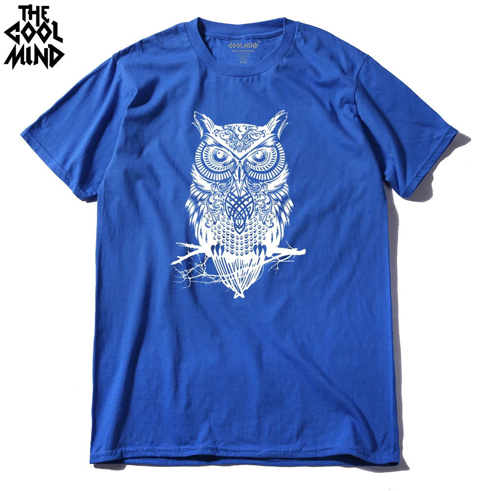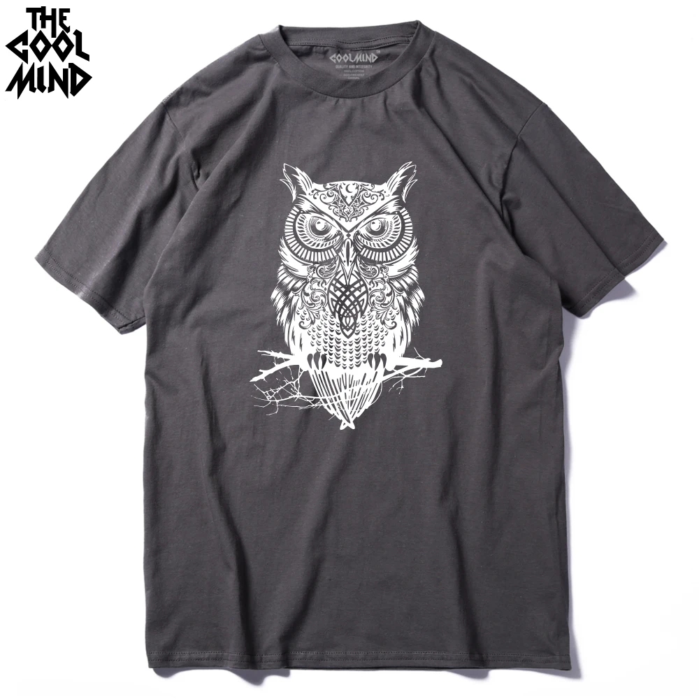 Мужская хлопковая футболка с коротким рукавом и круглым вырезом COOLMIND, Повседневная Свободная футболка с принтом совы, высокое качество