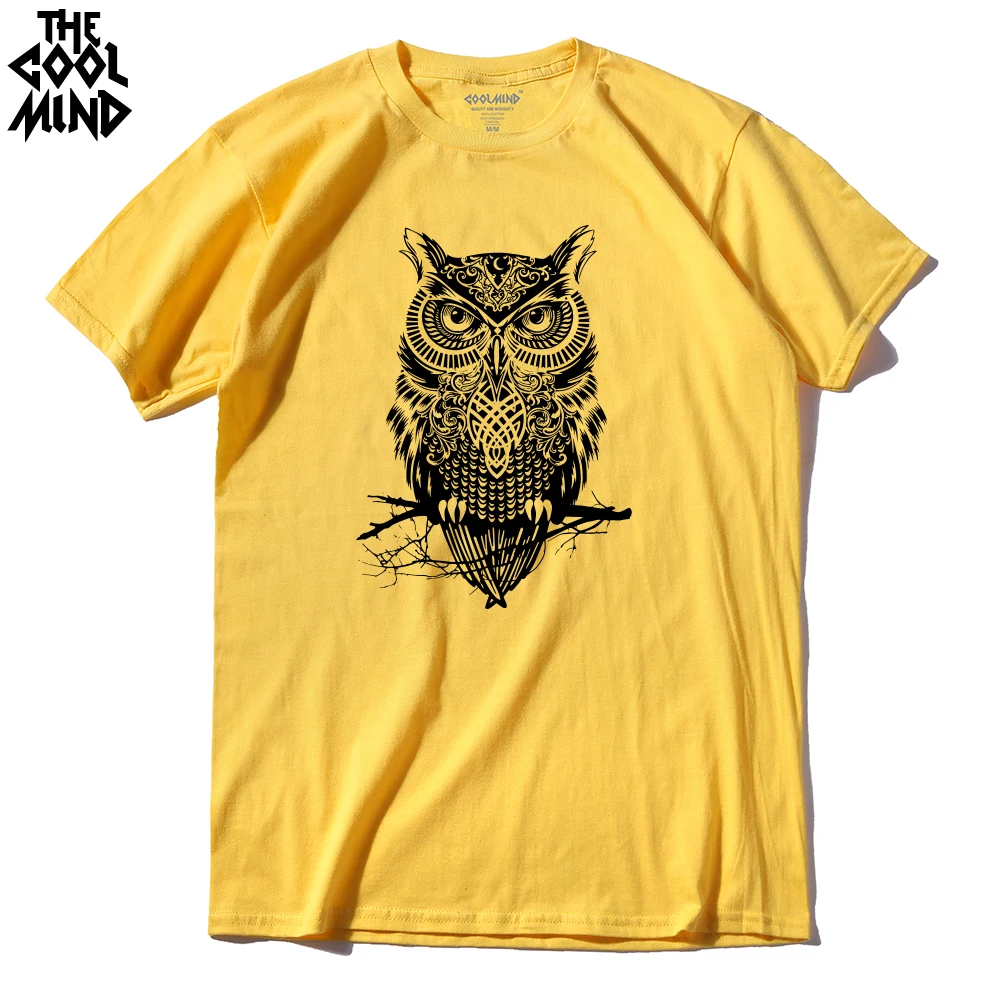 Мужская хлопковая футболка COOLMIND, с коротким рукавом, круглым вырезом, с принтом совы