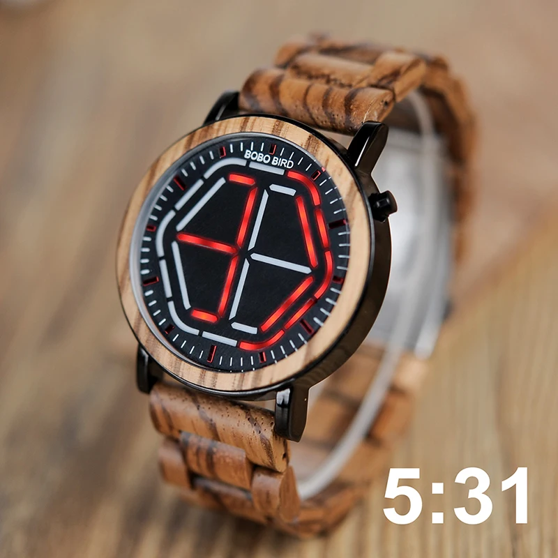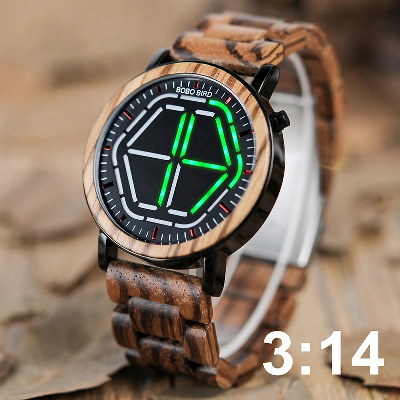 СВЕТОДИОДНЫЕ Цифровые мужские часы BOBO BIRD, наручные часы с деревянным ремешком зебры для мужчин, поставляются в бумажной коробке, мужские часы