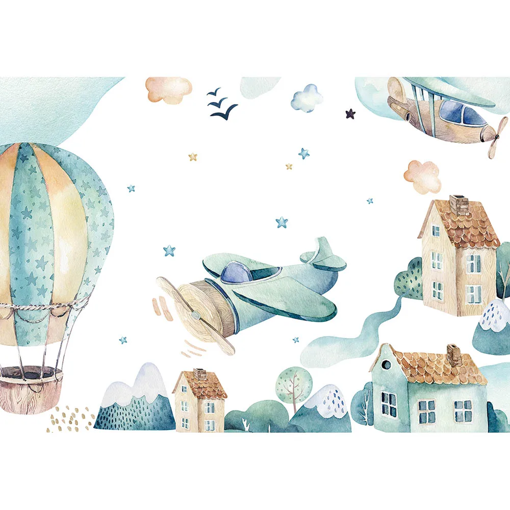 Фон для фотосъемки Allenjoy с изображением дня рождения, путешествия по миру, голубого неба, воздушного шара, самолета, портрета фотобудка для фотосессии