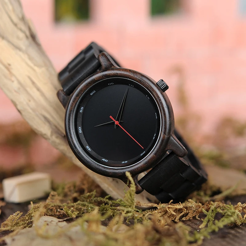 Наручные часы BOBO BIRD V-P10, мужские, из натурального черного дерева, кварцевые, с красной секундной стрелкой