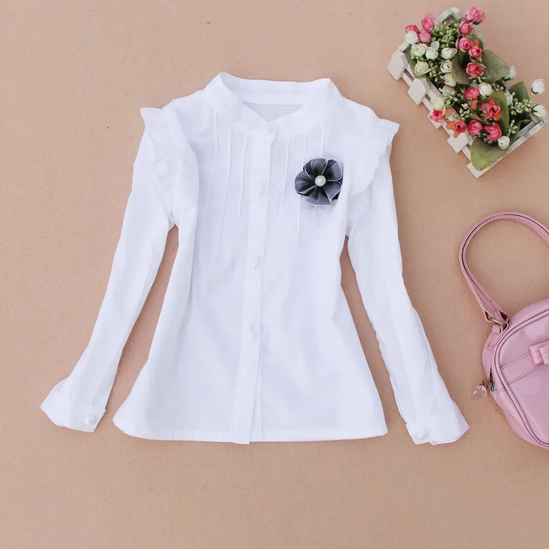 Школьные рубашки для девочек, детская блузка, хлопковая одежда, белая нижняя одежда, повседневные школьные блузки для подростков, одежда для больших девочек