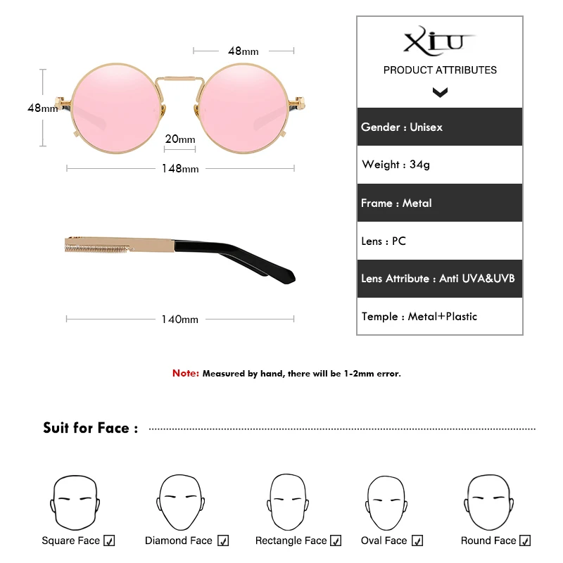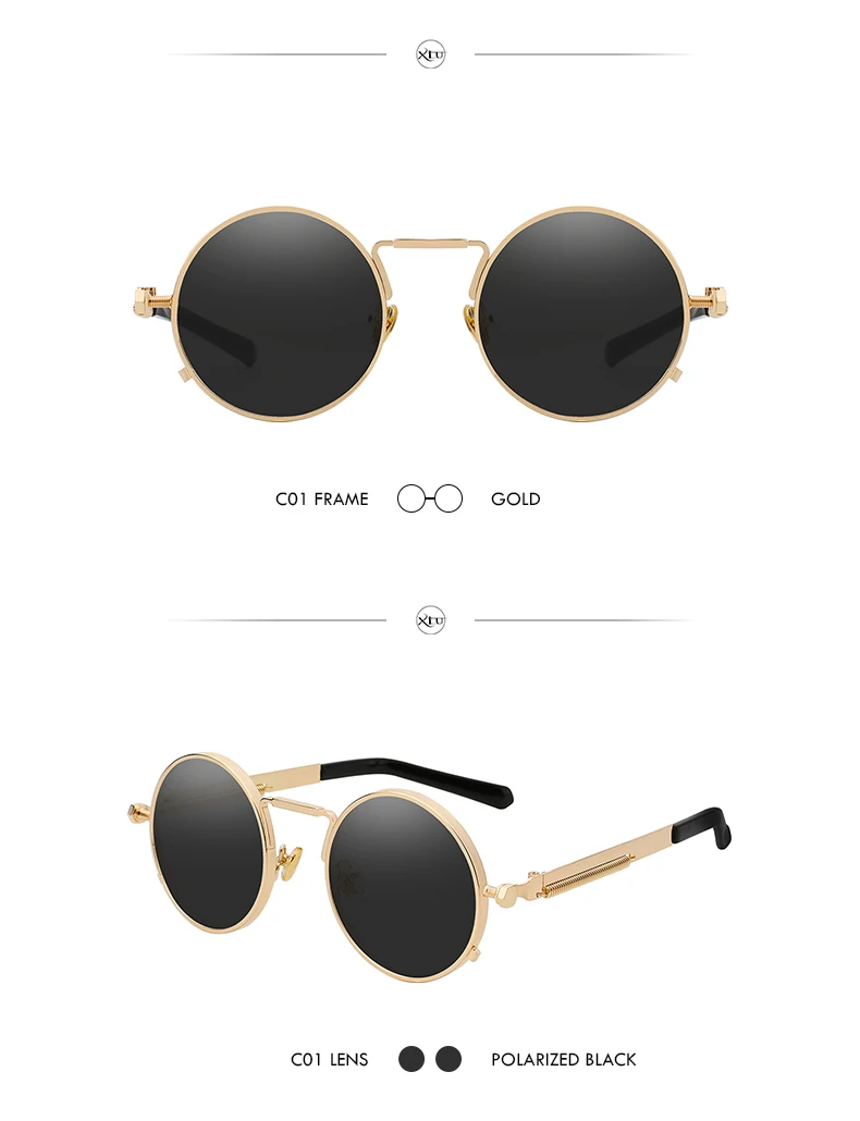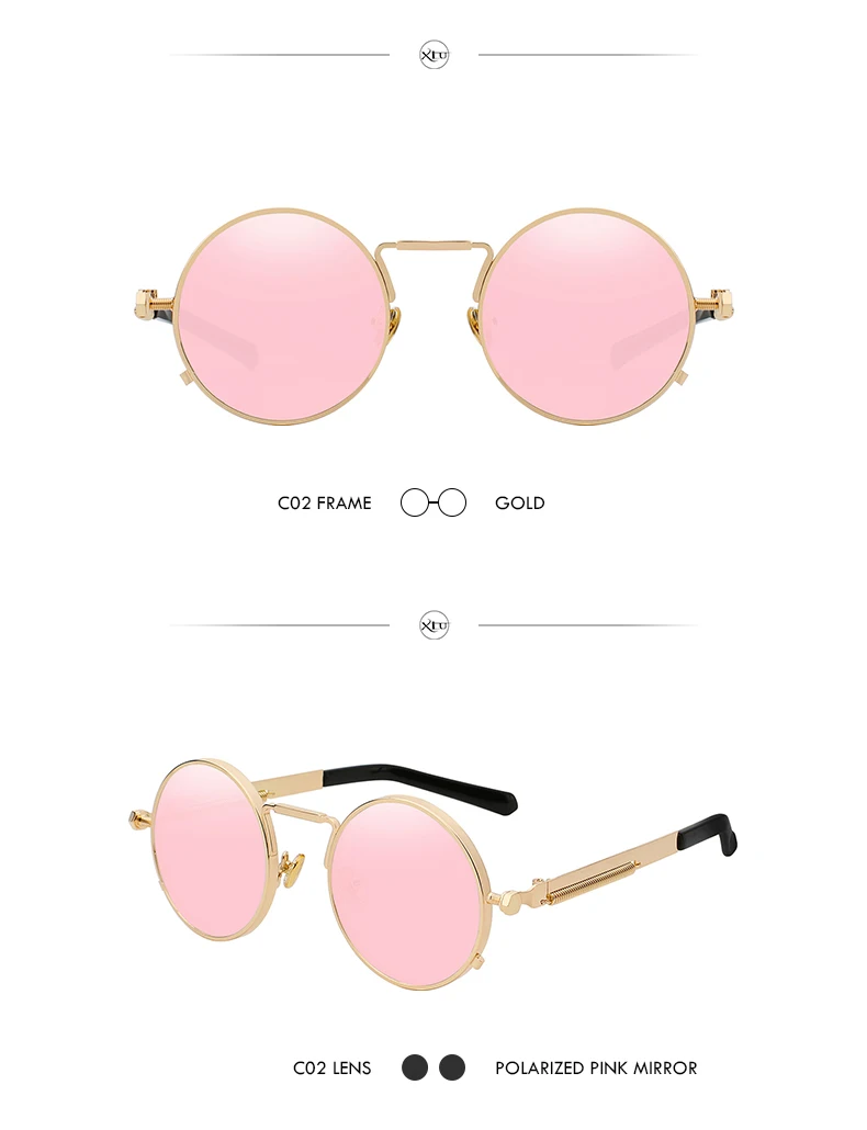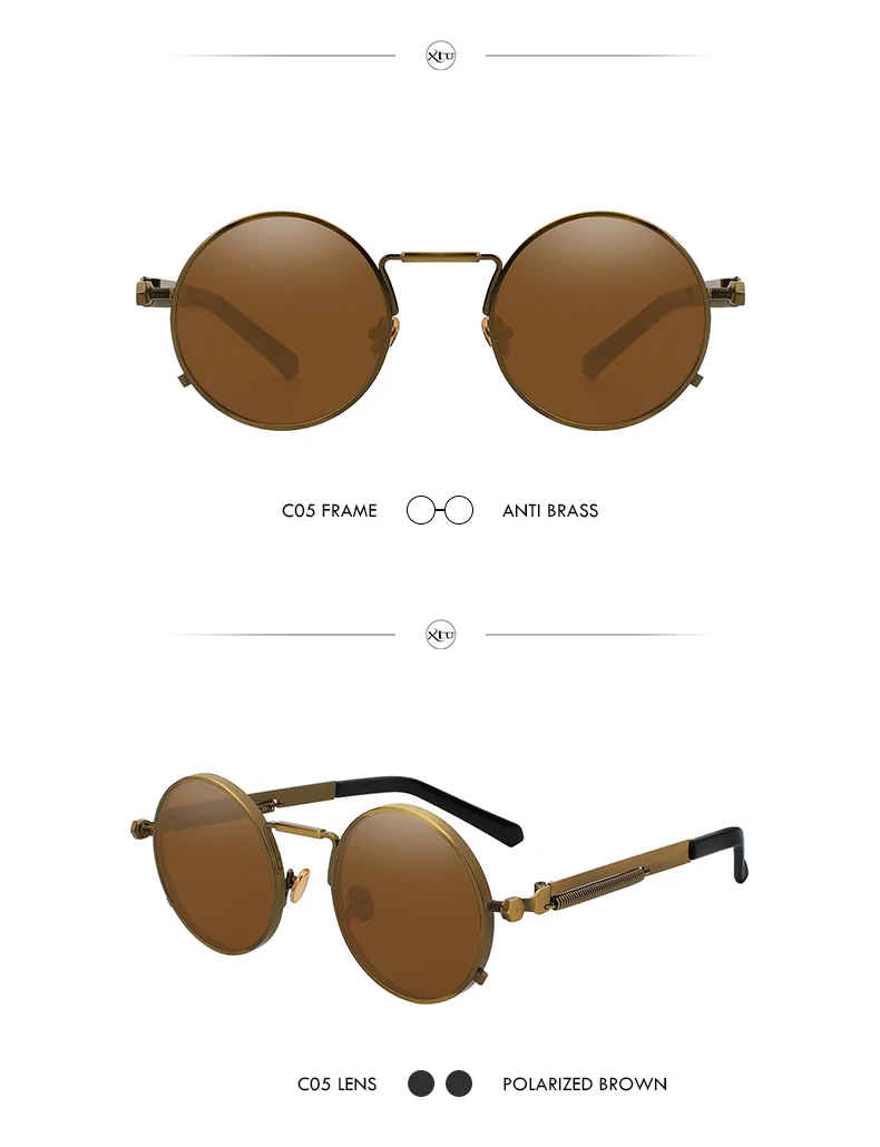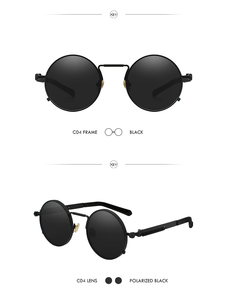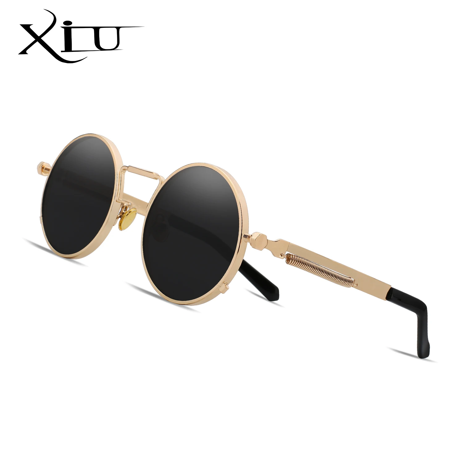 Солнечные очки XIU в стиле стимпанк для мужчин и женщин UV-400, поляризационные солнцезащитные, в круглой оправе, в винтажном стиле, брендовые дизайнерские, с зеркальными линзами