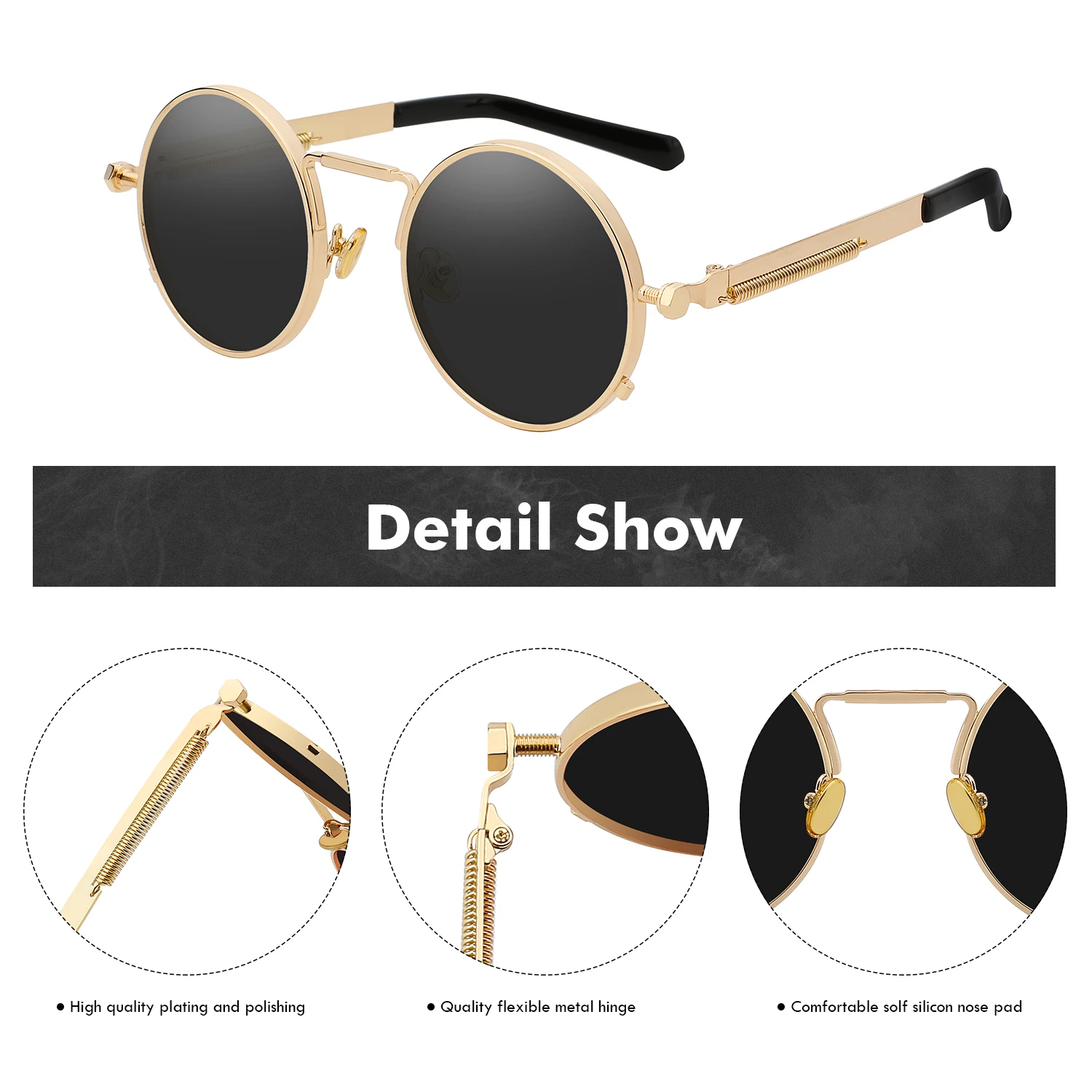 Солнцезащитные очки XIU мужские круглые готические, винтажные метал...