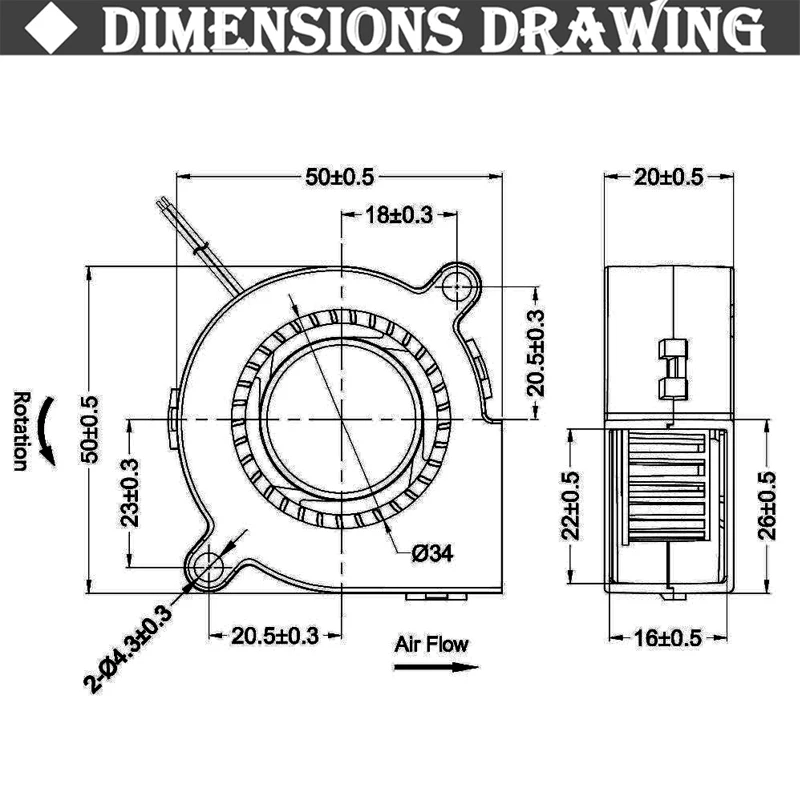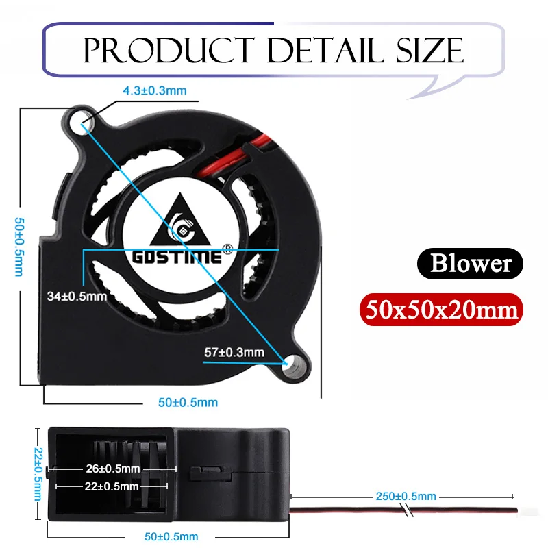 Вентилятор охлаждения Gdstime 5020, 2 шт., 24 В, 12 В, 5 В, 50 мм, 2 контакта