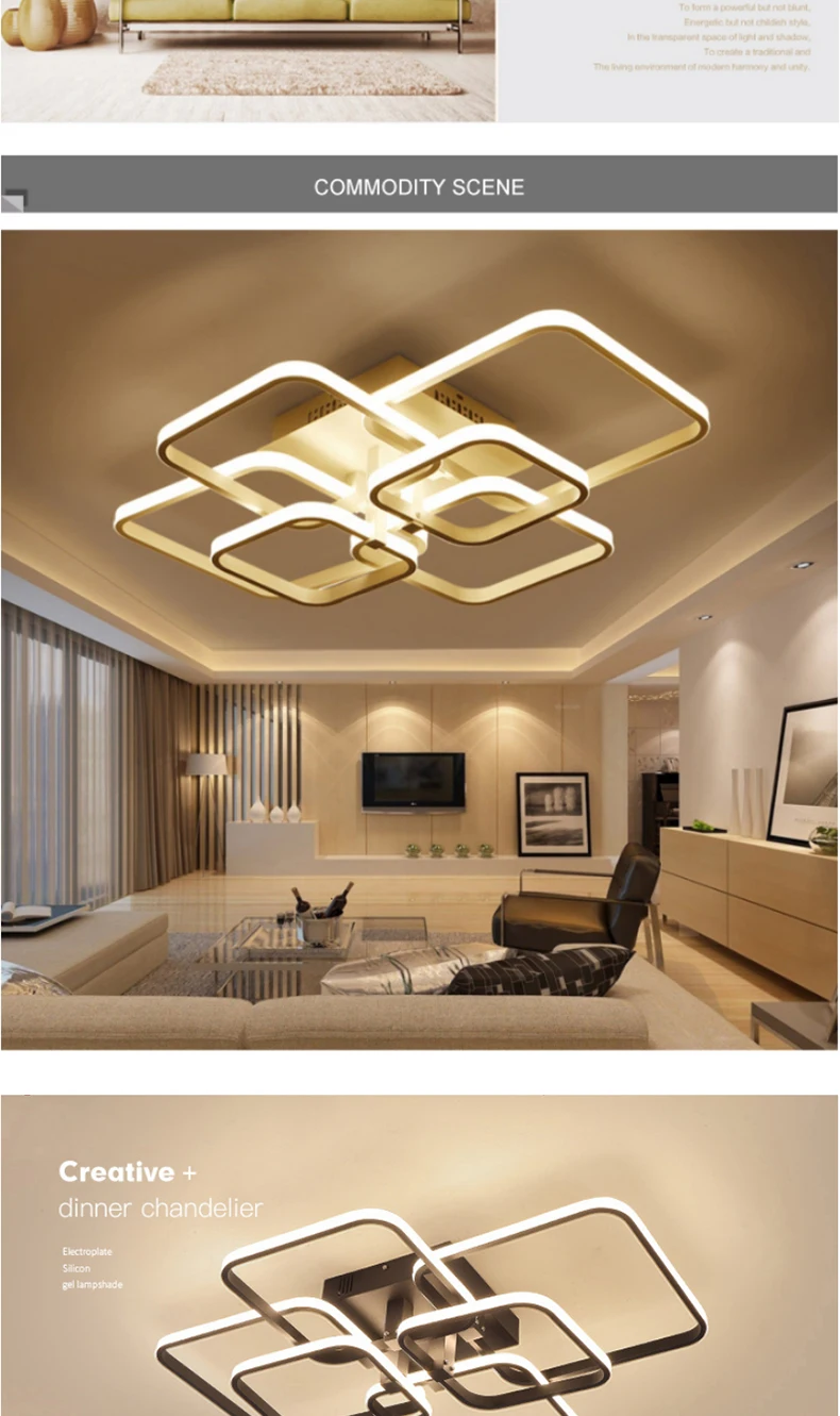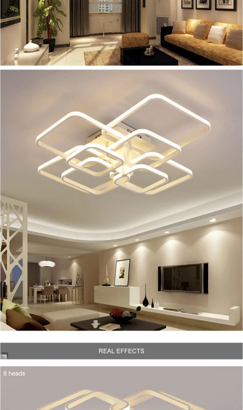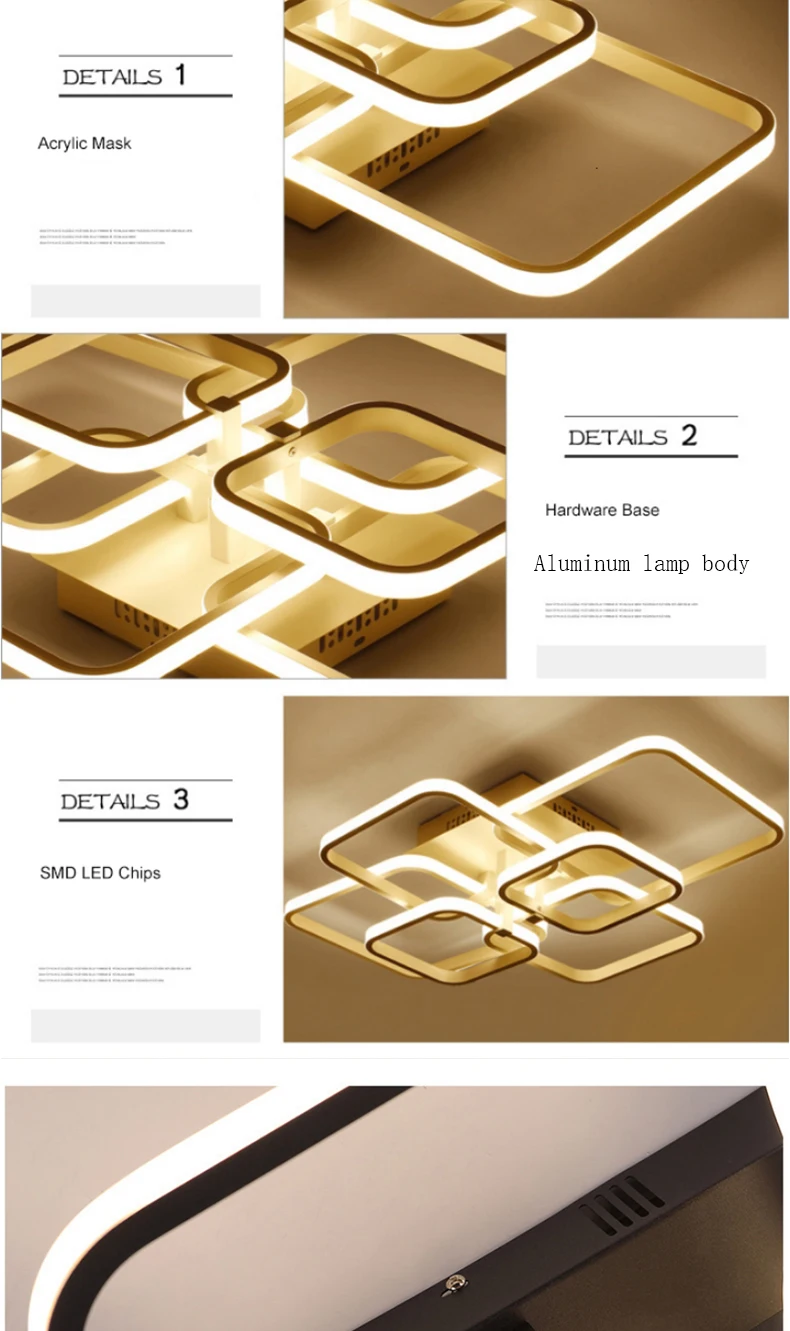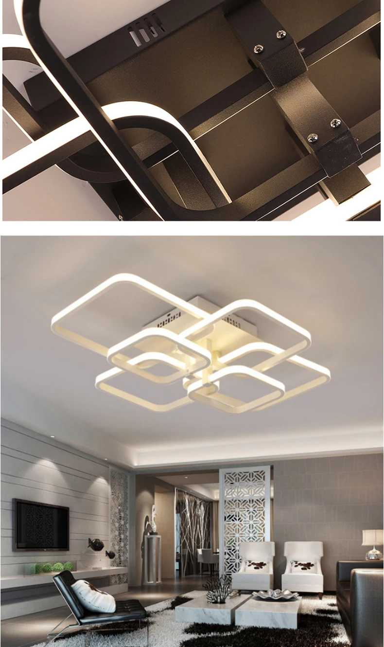 Современная светодиодная потолочная люстра с черно-белым покрытием, домашняя квадратная лампа с регулируемым освещением для гостиной, спальни, столовой