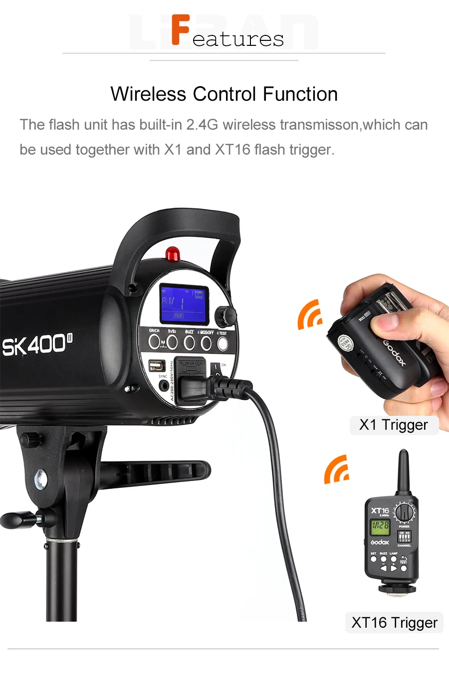 Благодаря встроенной беспроводной системе X Godox 2,4G, серия SKII-это экономичный компактный стробоскоп для вспышки для съемки товаров электронной коммерции, портретной съемки и фото образа жизни. При небольшой и средней студийной съемке он может работать как при высосветильник, фосветильник щении или светильник щении волос.