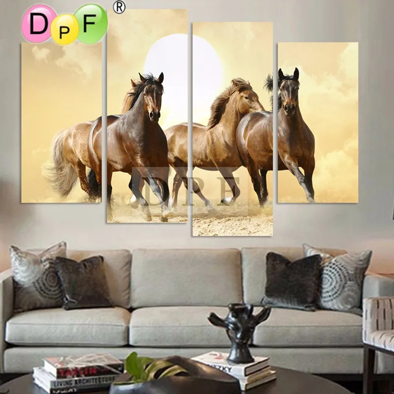 Набор из 4 алмазных картин DPF бегущая лошадь 5D сделай сам, вышивка крестиком, полноразмерная мозаика, домашний Декор, живопись