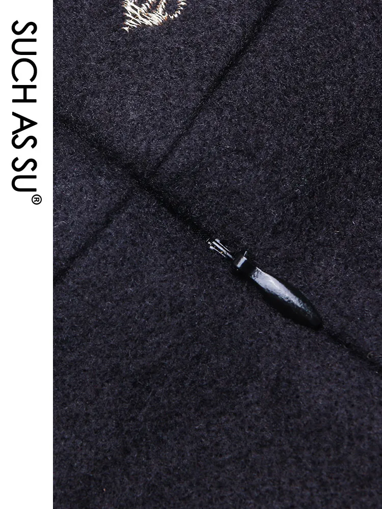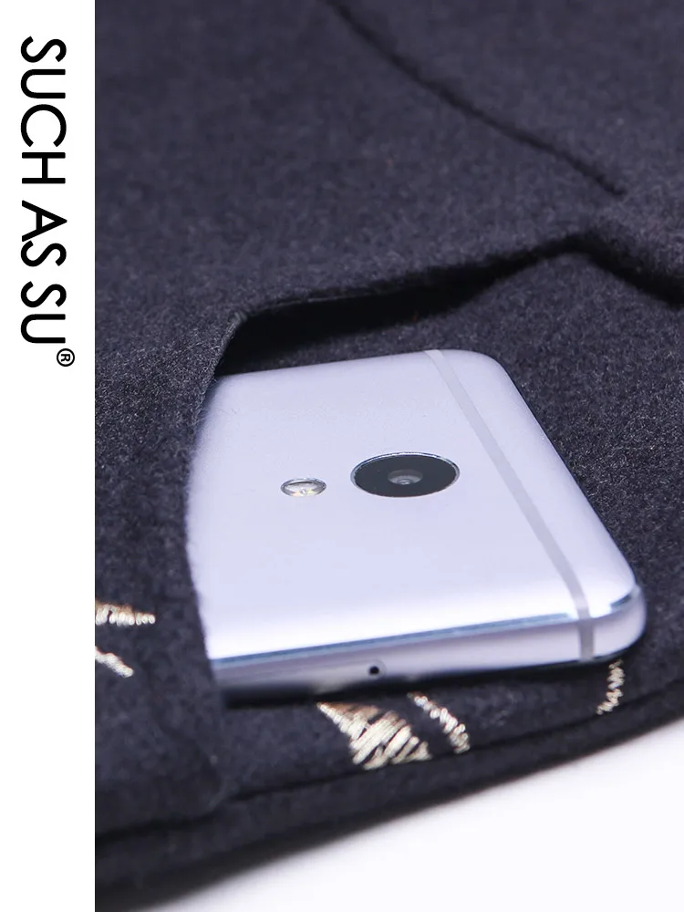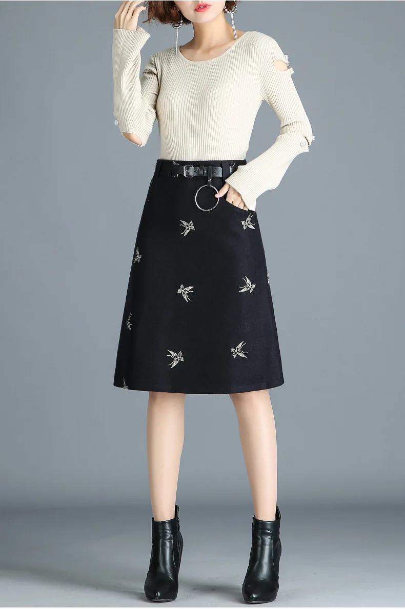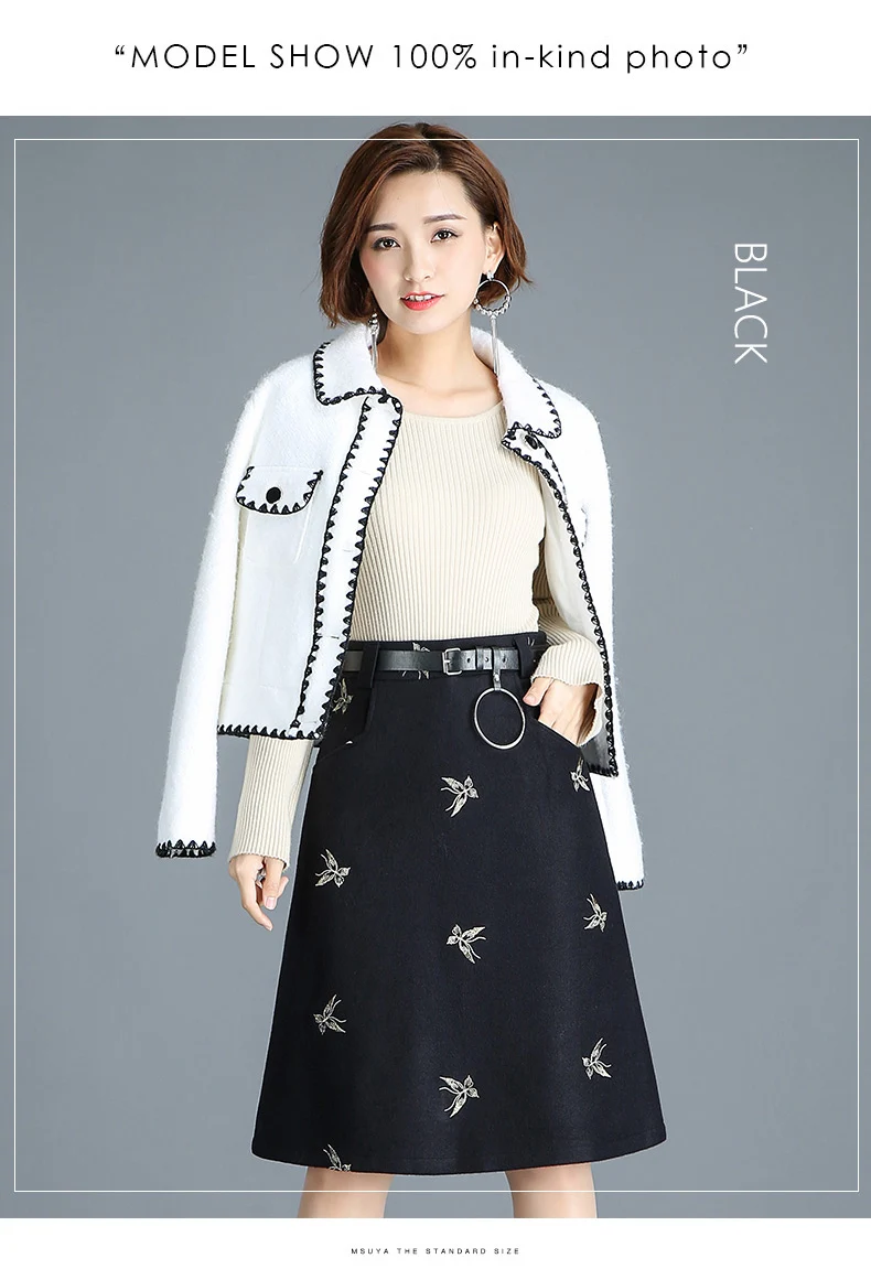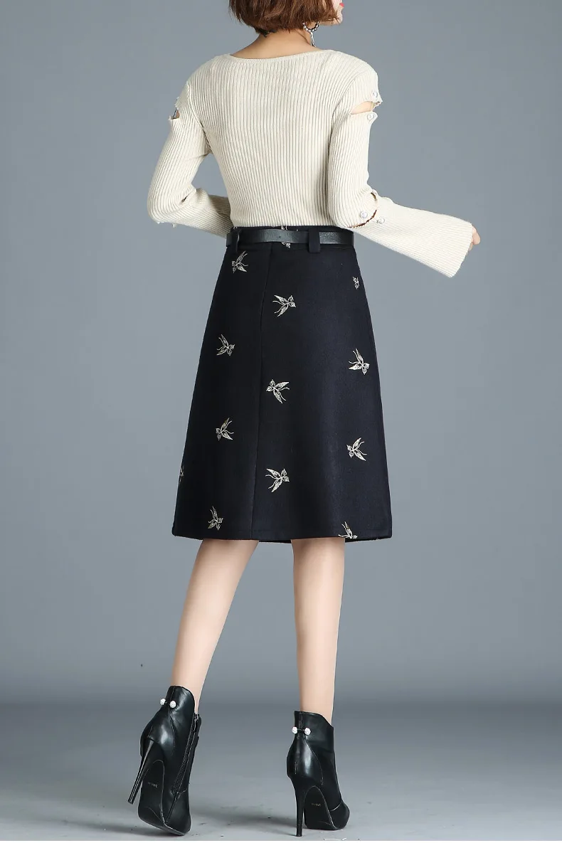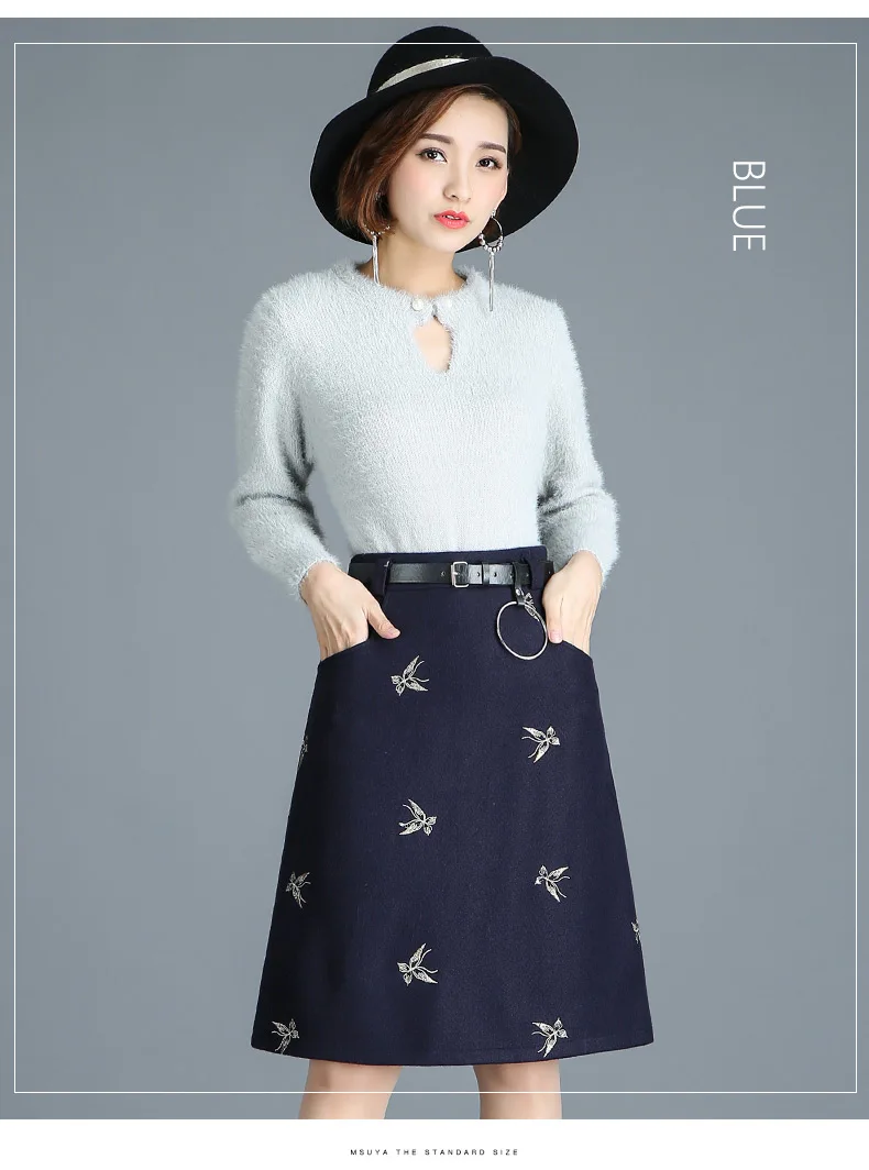 Таких как Су Новая мода 2021 осенне-зимняя одежда из шерсти юбки женские сапоги черного и темно-синего цвета с вышивкой в виде бабочек и S-3XL, с высокой талией, а-силуэт, юбка