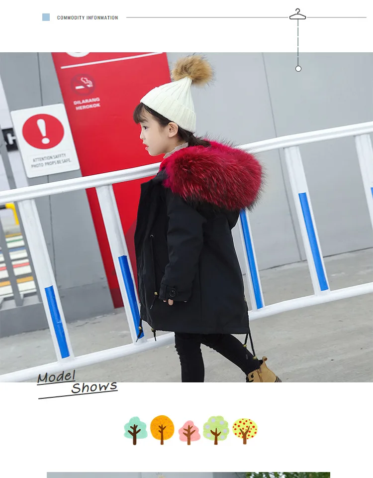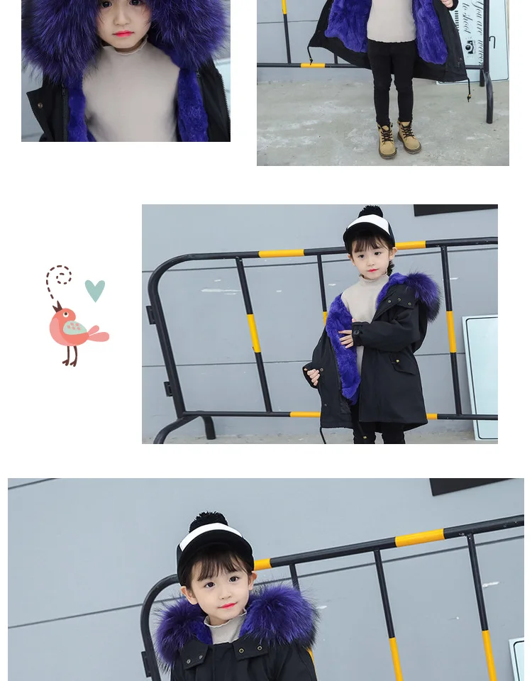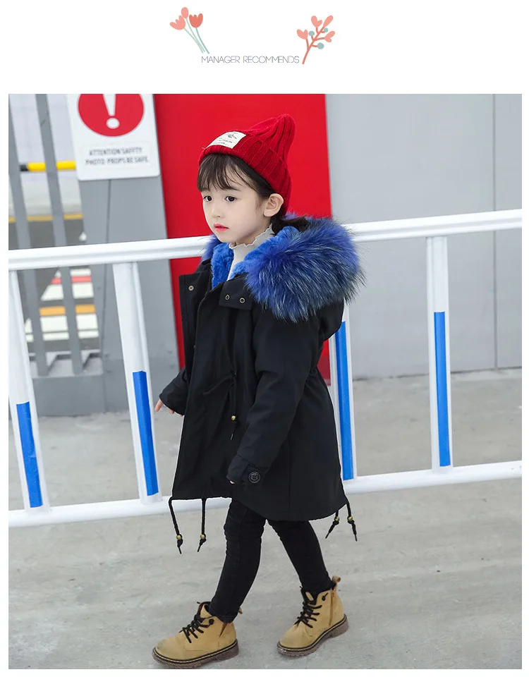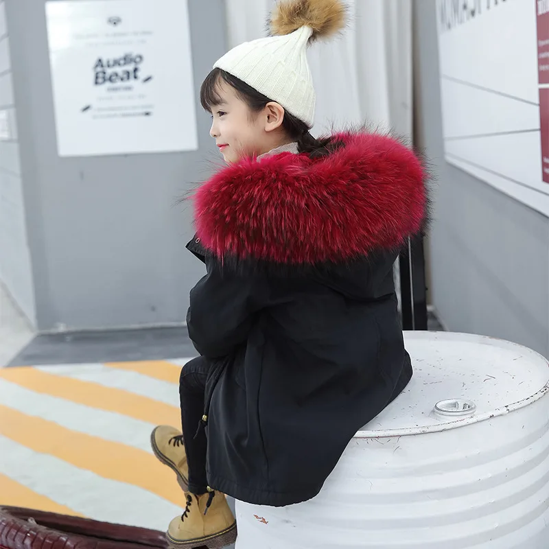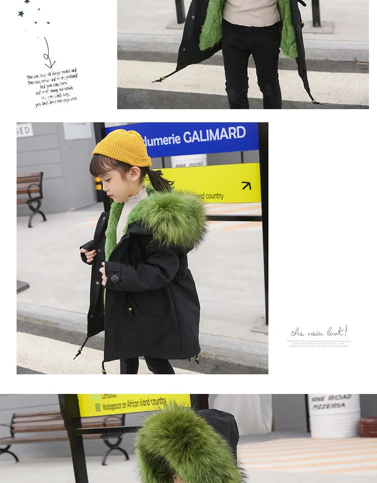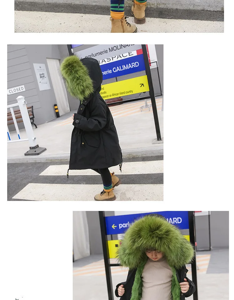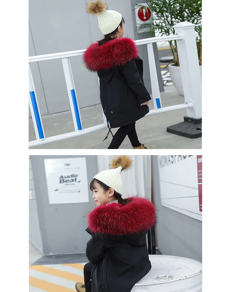 Зимнее пальто с мехом для девочек Детская куртка с натуральным кроличьим мехом теплые парки куртка с натуральным мехом енота для мальчиков и девочек Размер 110-170 TZ204