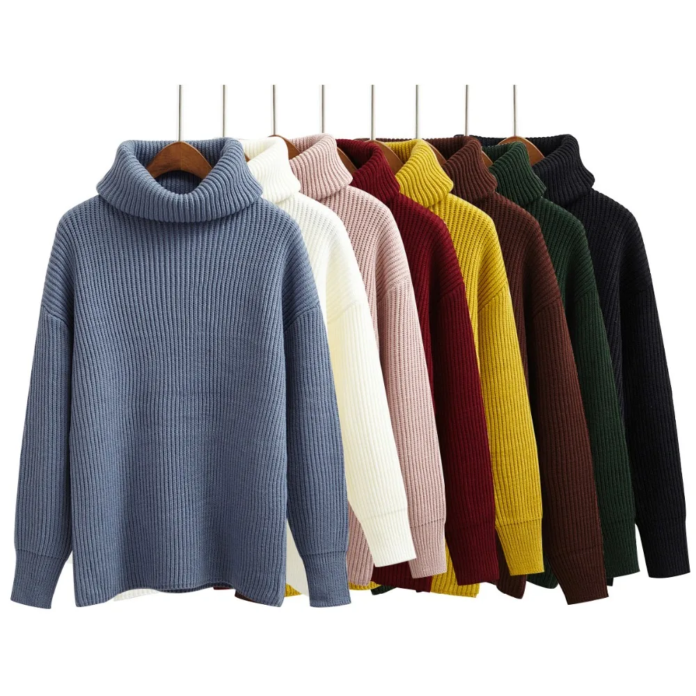 Женская однотонная водолазка в стиле Харадзюку, свободный утепленный свитер в стиле ретро, милый вязаный джемпер и пуловер