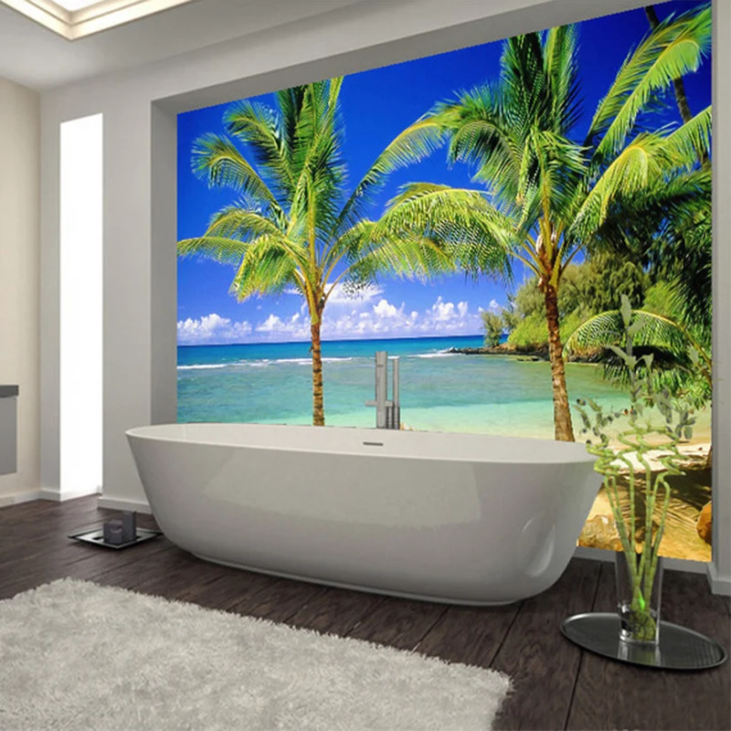 3D обои на заказ, современный пляж, Кокосовая пальма, море, природа, пейзаж, ПВХ, водонепроницаемый, ванная комната, обои