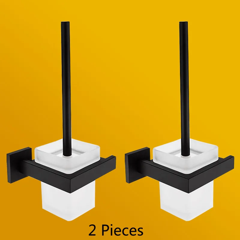 Горячая Распродажа, набор черных туалетных кистей, держатель для туалетной щетки, полка с настенным креплением и стеклянной чашкой, бытовые товары из нержавеющей стали