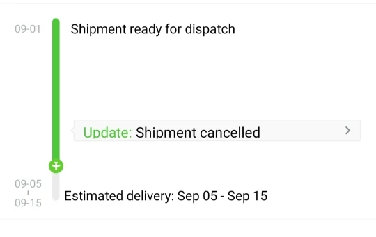 Продавец отправил мой заказ позже. Через 15 дней доставка была отменена. И я отправил ему много сообщений, чтобы спросить его, почему он отменил продавец никогда не отвечаю мне. Продавец не заботится о покупателе. И мне очень жаль, потому что сейчас я трачу 20 дней на этот заказ.
