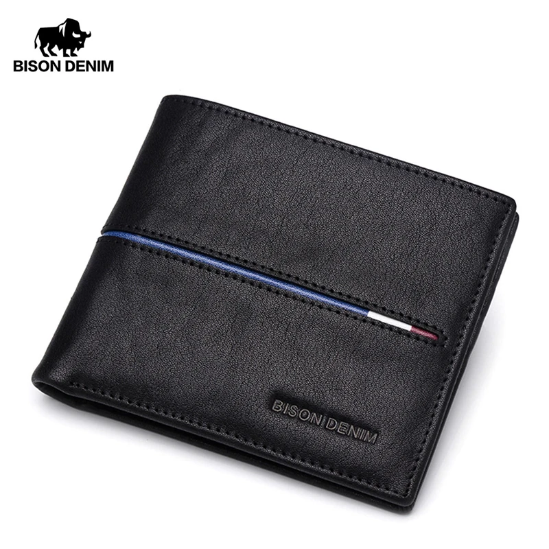 Кошелек мужской BISON DENIM, из натуральной кожи, тонкий, складной, с отделением для монет и карт, N4437