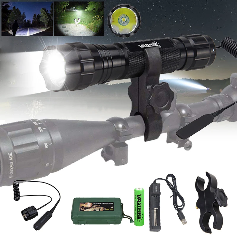 Водонепроницаемый зеленыйбелыйкрасный светодиодный военный охотничий фонарик, батарея 18650, переключатель давления и зарядное устройство USB