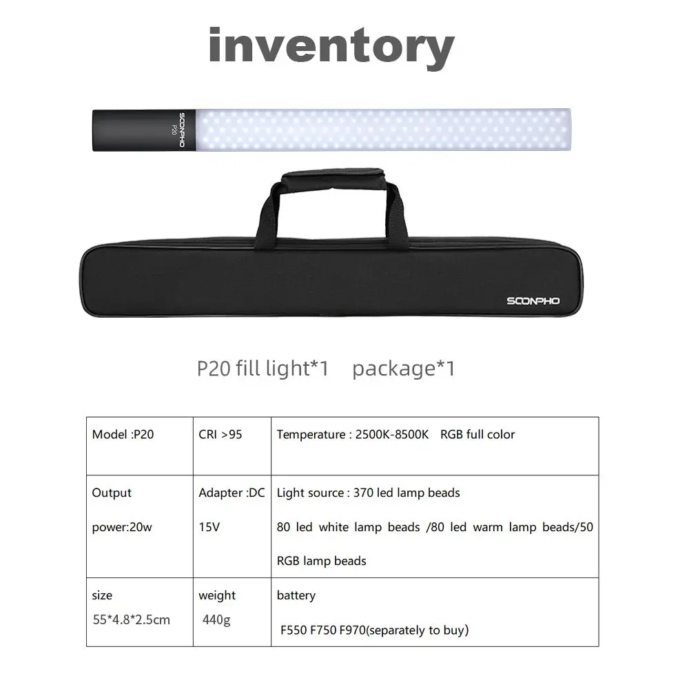 Ручной светодиодный светильник P20, 2500k-8500k RGB, цветной уличный светильник для свадебной фотосъемки с батареей 4400mHA