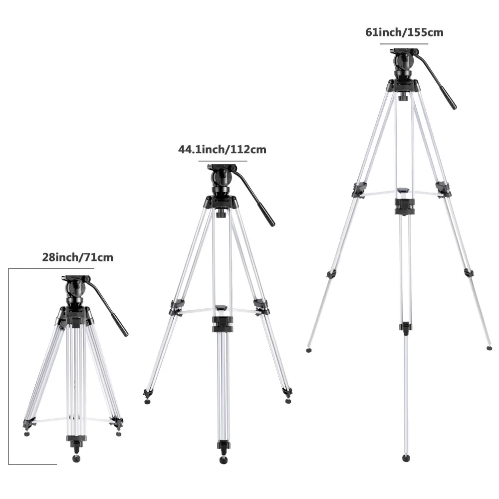 Штатив для видеокамеры Neewer Pro 61 дюйм/155 сантиметров из алюминиевого сплава с подвижной головкой на 360 градусов, 1/4 и 3/8 дюйма, БЫСТРОРАЗЪЕМНАЯ пластина для обуви и пузырьковый уровень, нагрузка до 13 фунтов/6 кг (черный)