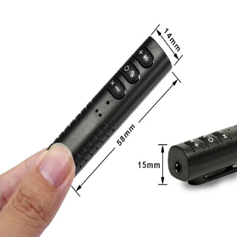 Материал: пластик Количество: 1 шт. Цвет изделия: черный Версия Bluetooth: 4,1 Диапазон частот: 2,4 ГГц Профиль: A2DP Диапазон передачи: до 10 м/33 футов I/O 3,5 мм гнездовой разъем, мини-флеш-накопитель USB с гнездовым порт Источник питания: 5 В постоянного тока Время зарядки: около 30 мин Время работы: около 4 ч Размер: 1,4*1,5*5,8 см/0,5*0,6*2,3 "(Д * Ш * В)