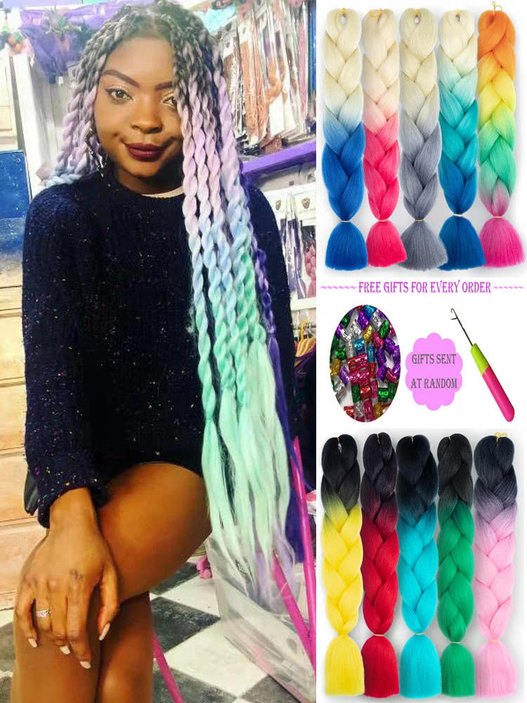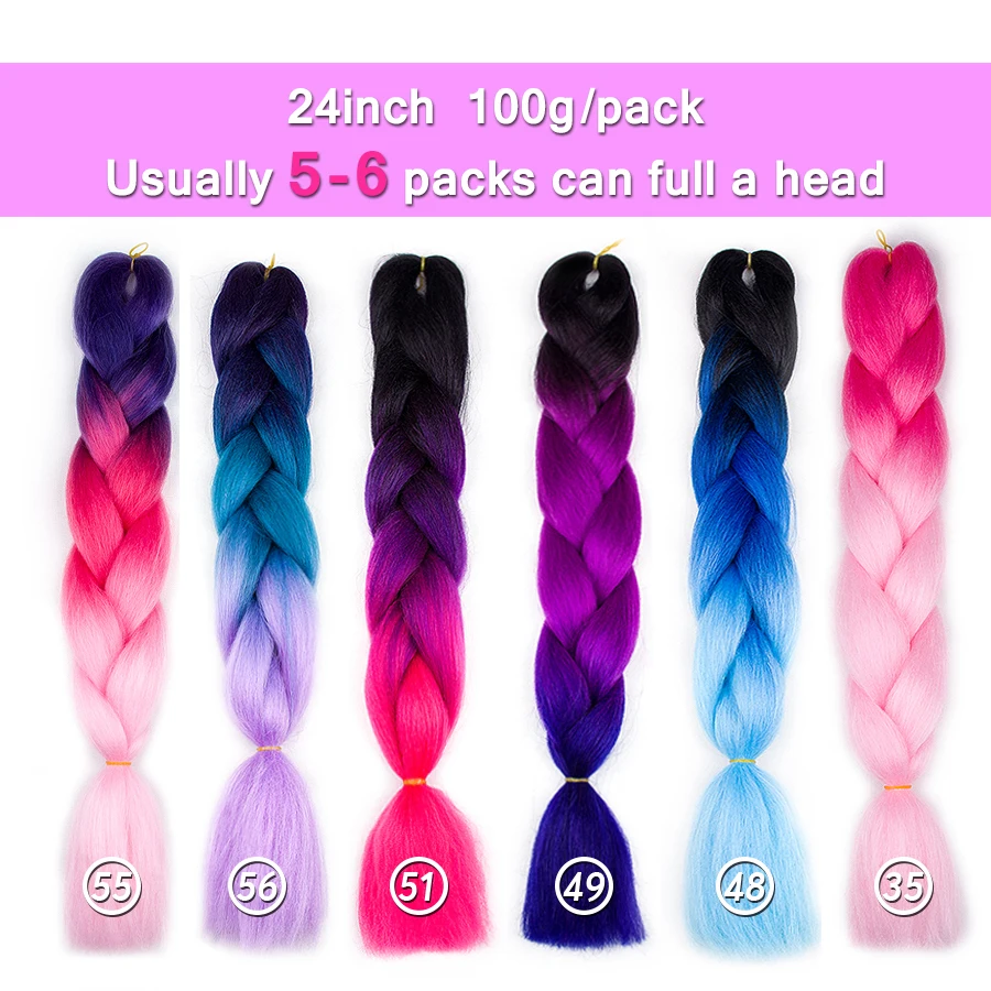 Синтетические плетеные волосы для женщин, Джамбо плетеные волосы, африканская волосы кроше для наращивания, высокотемпературное волокно, 100 гшт., 24 дюйма