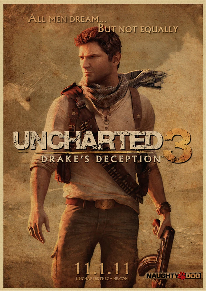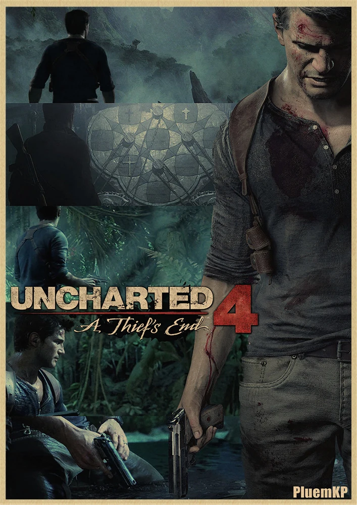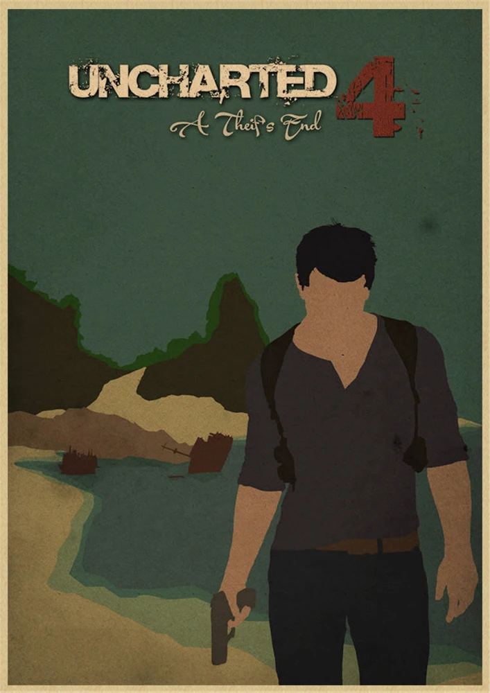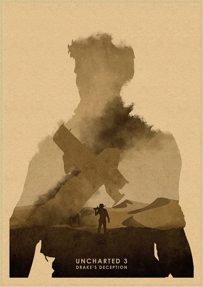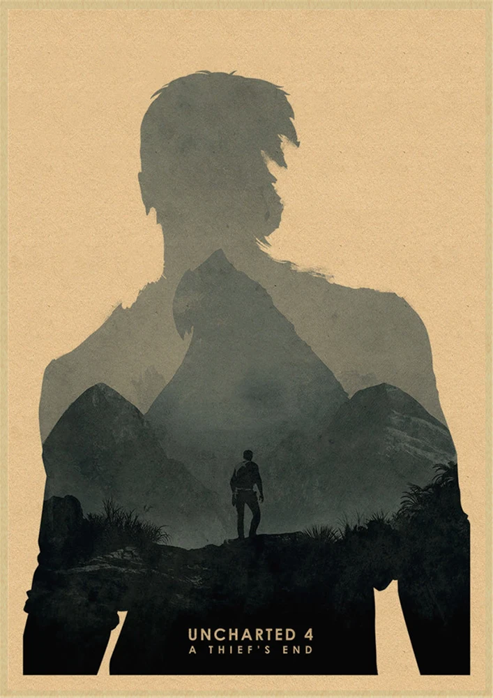 Постер из крафт-бумаги Uncharted, Классическая игра, для бара, кафе, гостиной, столовой, настенные декоративные картины