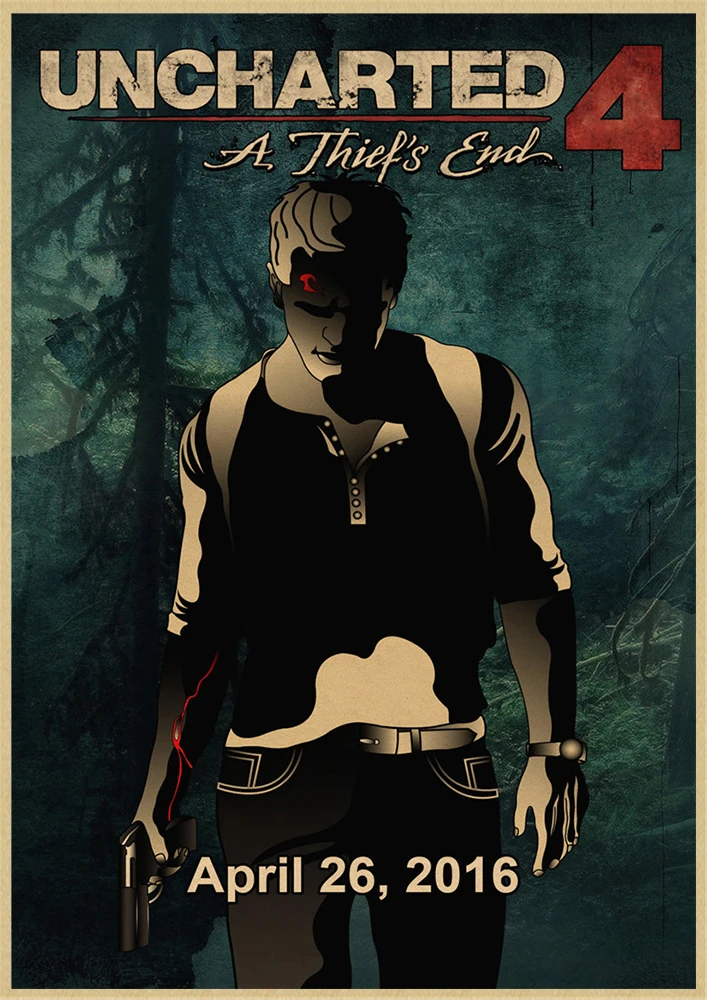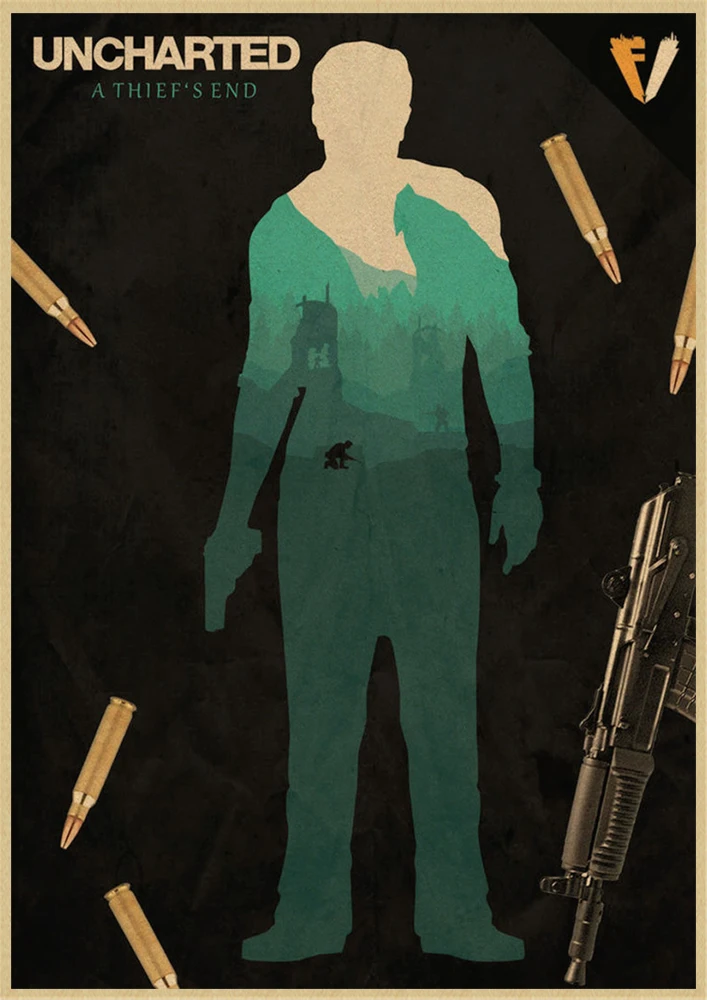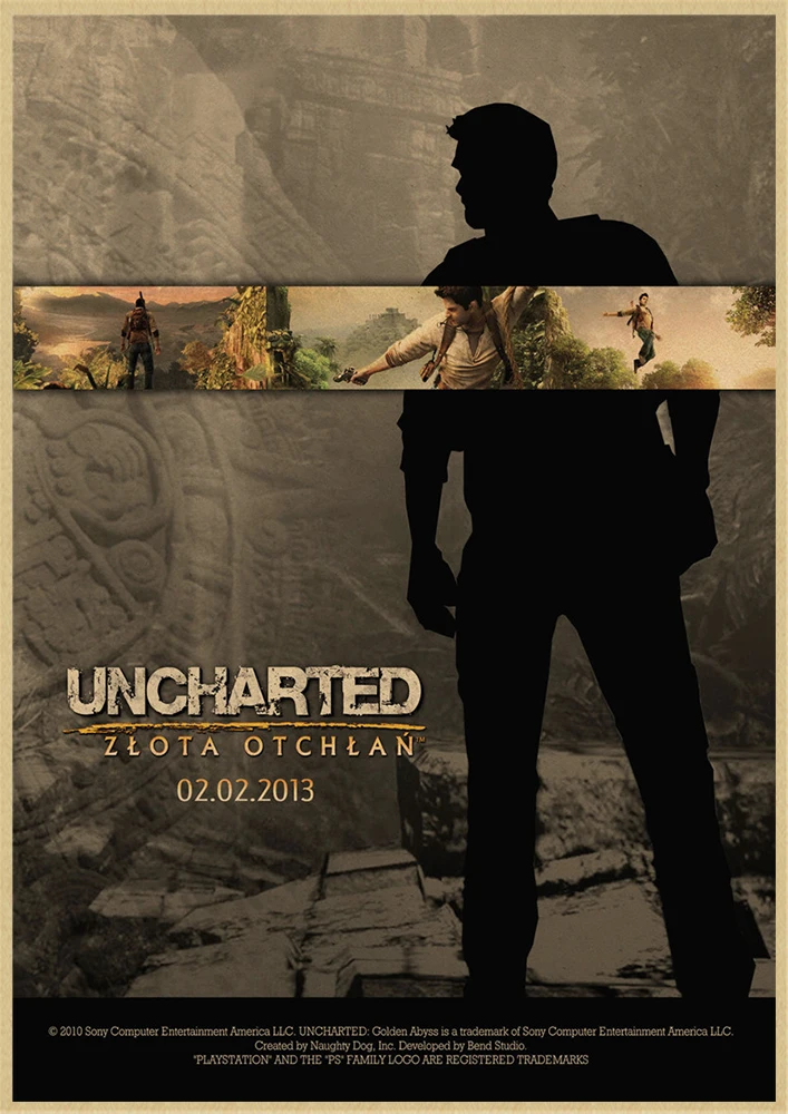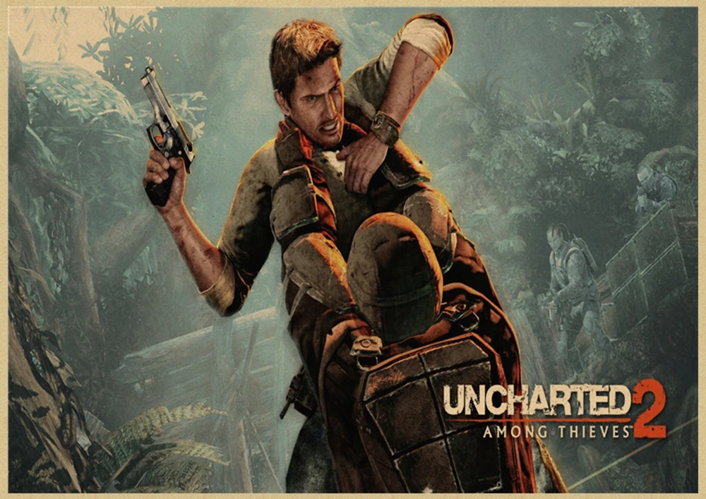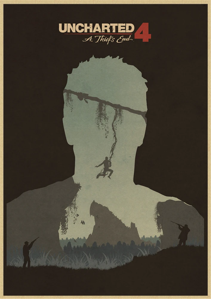 Постер из крафт-бумаги Uncharted, Классическая игра, для бара, кафе, гостиной, столовой, настенные декоративные картины
