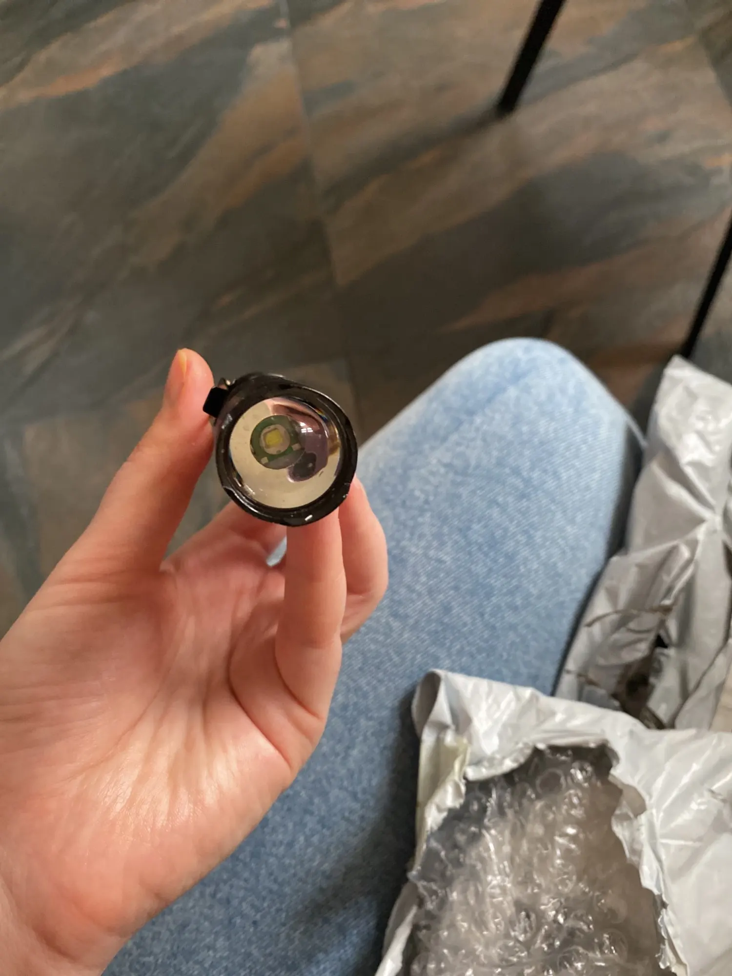 Фонарь пришёл рабочий, пользоваться можно, но понравился он мне не очень. Очередная безымянная копия фонаря CREE Q5 UltraFire. Качество сборки конечно хуже, корпус из металла, но более тонкий. Масштабирование работает, но подвижная часть сдвигается довольно туго, что не очень удобно, сама эта часть неразборная а линза вставлена СНАРУЖИ! И световое пятно у этого фонаря меньше, а вокруг него отблеск в виде кольца. Раздражает. Хорошо, что хоть с одним режимом. Заказывала такие фонари несколько раз у разных продавцов, но пошли только такие.