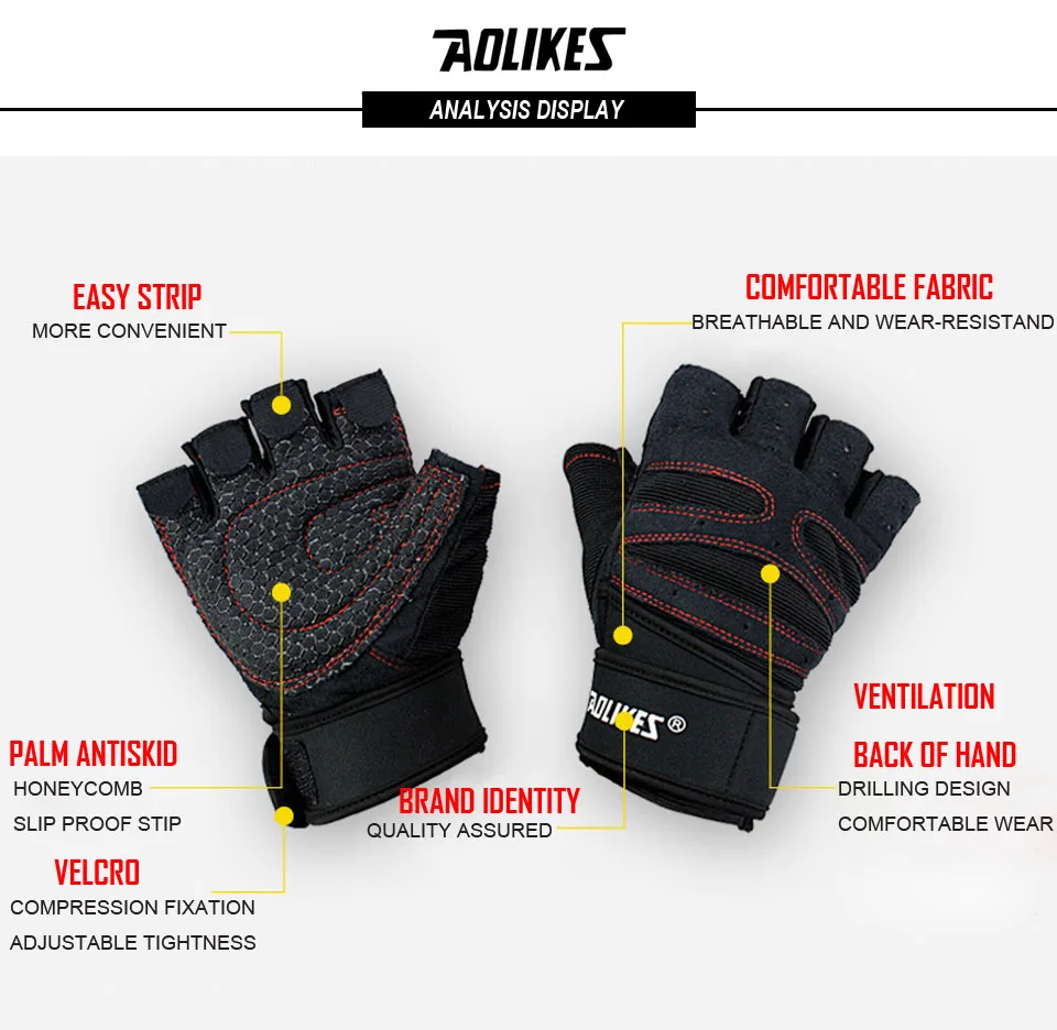 Перчатки AOLIKES для занятий тяжелой атлетикой, фитнесом, перчатки, поддержка запястья, 1 пара