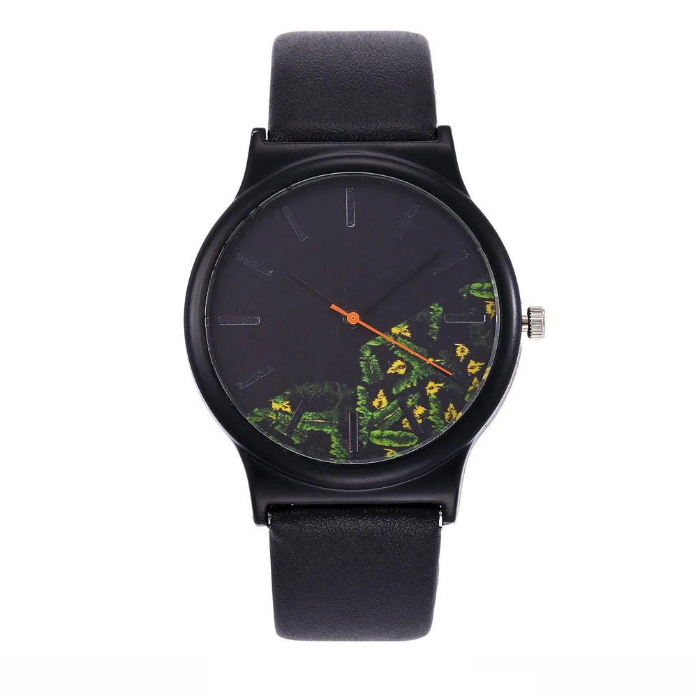 Часы наручные женские кварцевые с цветами, черные, 2017