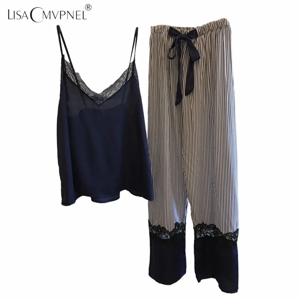 Женская пижама из вискозы Lisacmvpnel, ночная рубашка на тонких бретелях + длинные штаны, повседневный домашний комплект