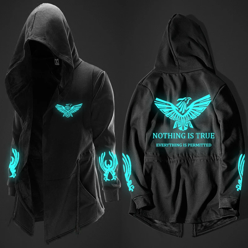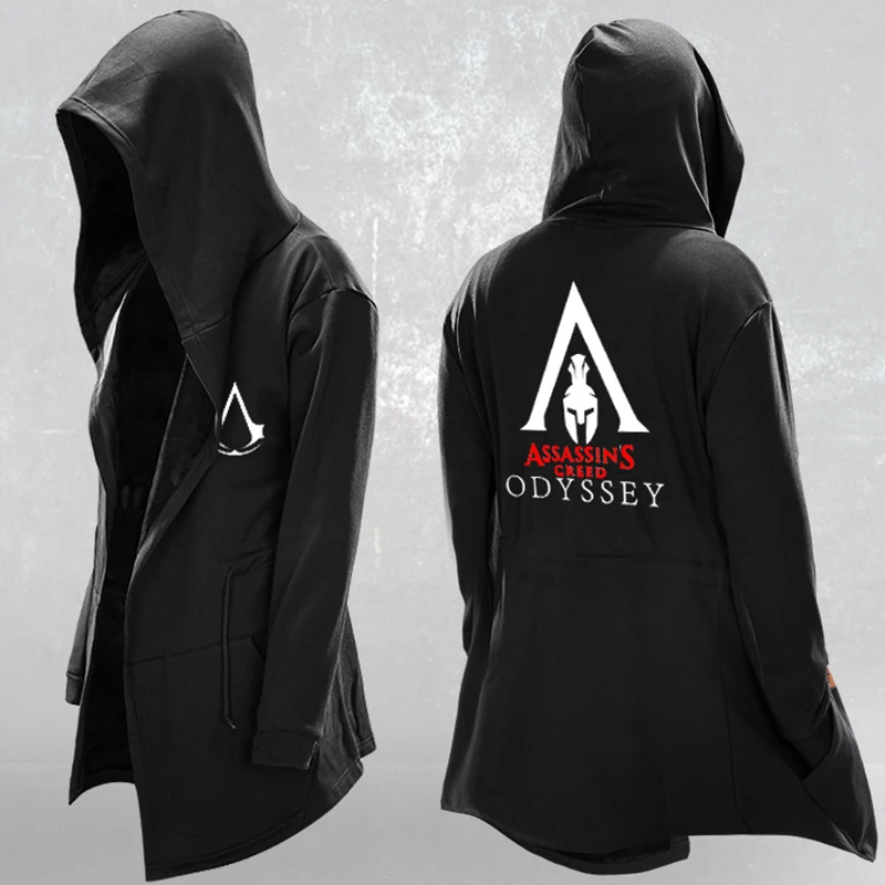 Толстовка мужская с капюшоном, свитшот с длинным рукавом, черная накидка, пальто-накидка, уличная одежда, большие размеры, Осень-зима