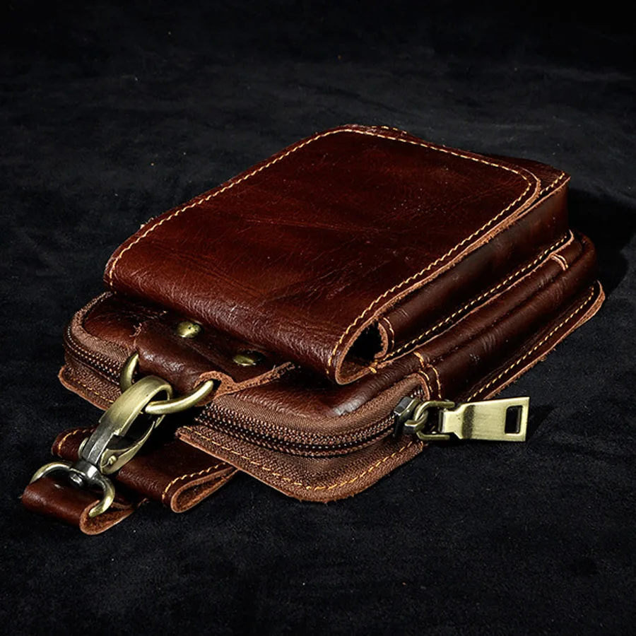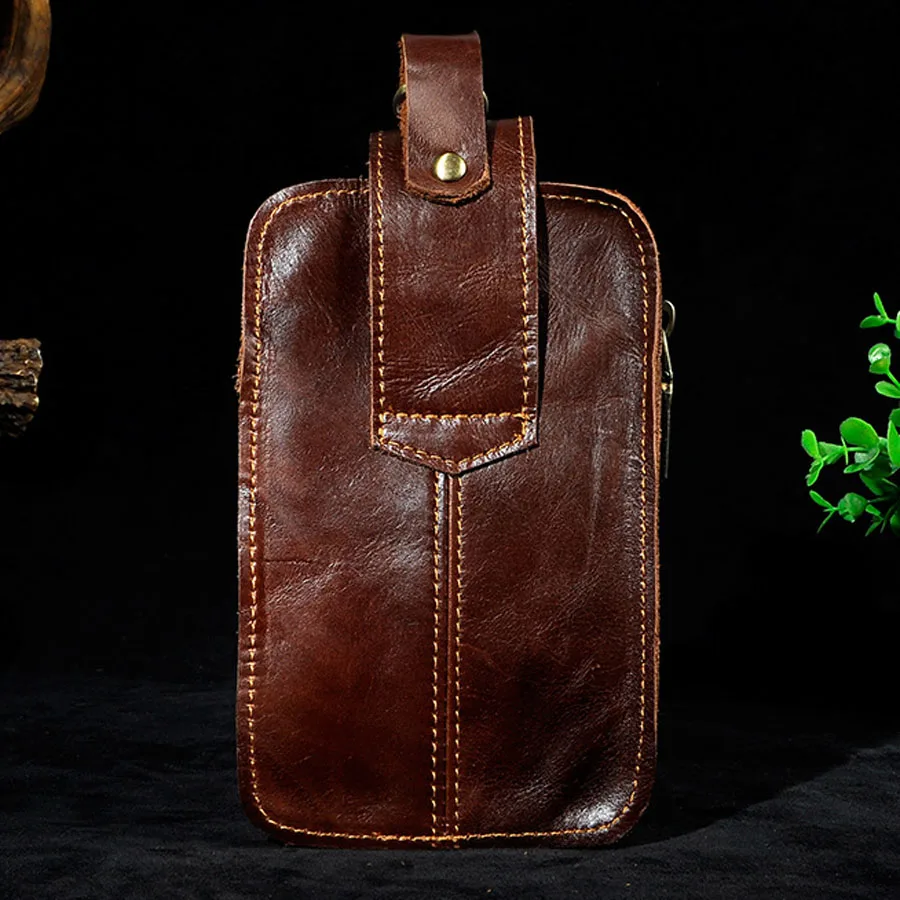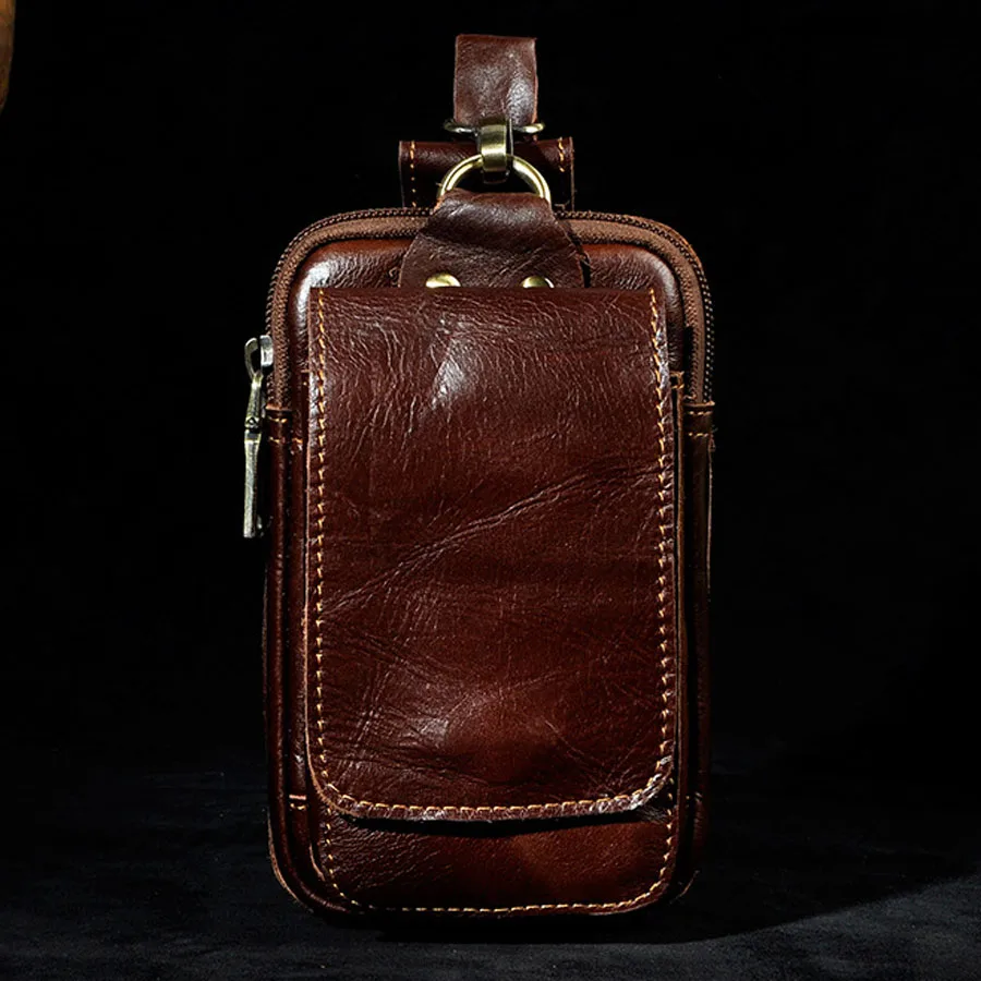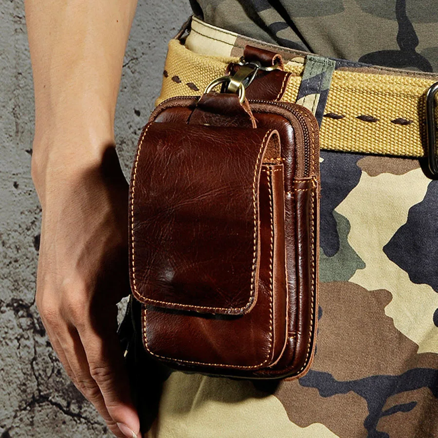 Забавная поясная сумка из натуральной кожи для мужчин, кошелек для монет и ключей от сотового телефона и сигареты, сумочка на бедро с крючком из воловьей кожи Крейзи Хорс