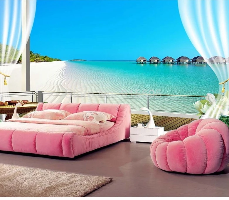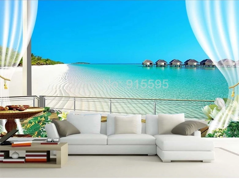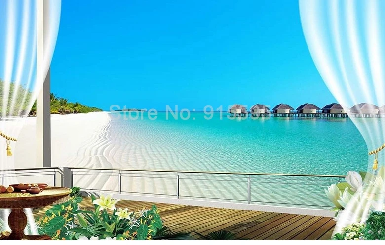 Пользовательские 3D фотообои Мальдивы 3D стереоскопические Окна Балкон пляж море фон Настенная роспись нетканые обои