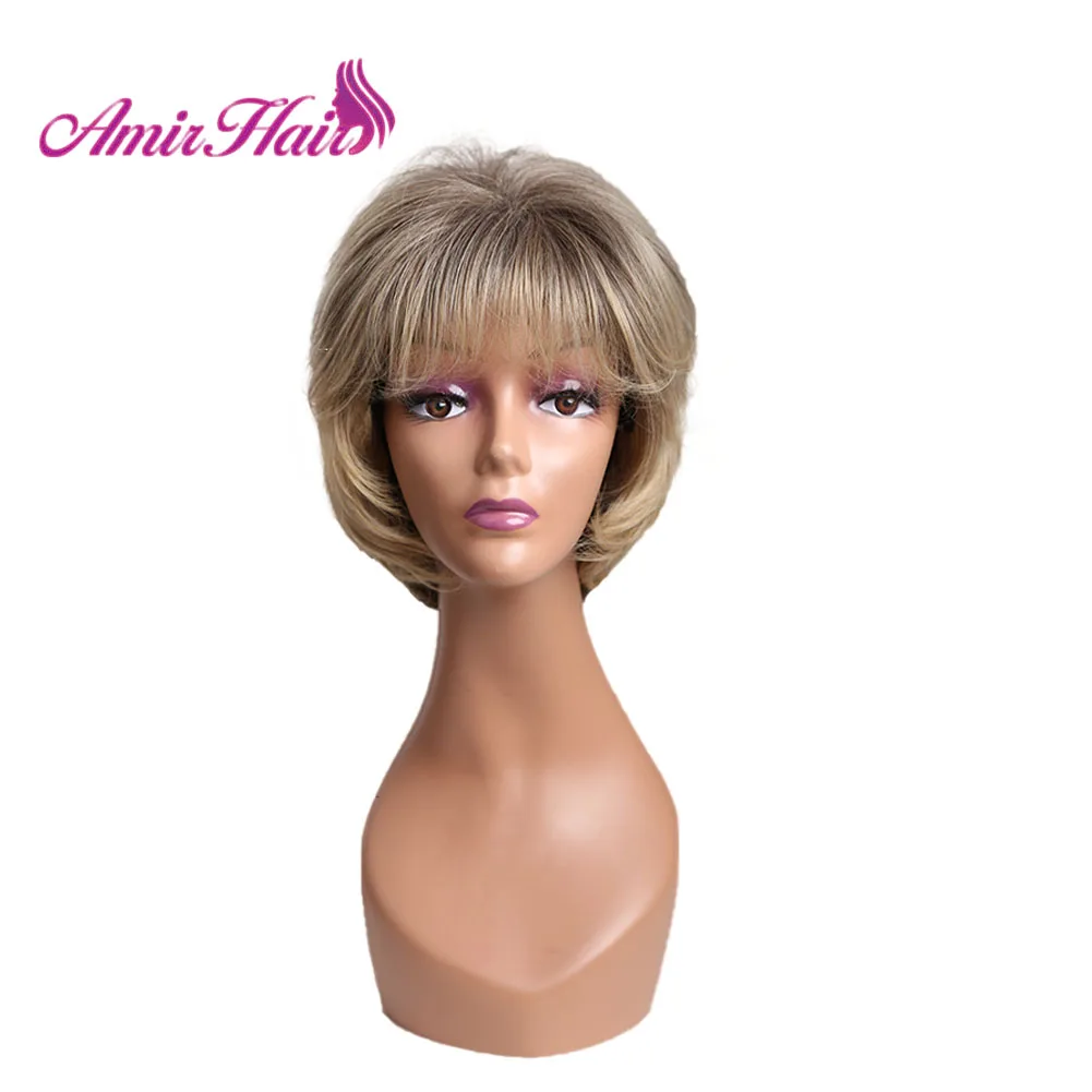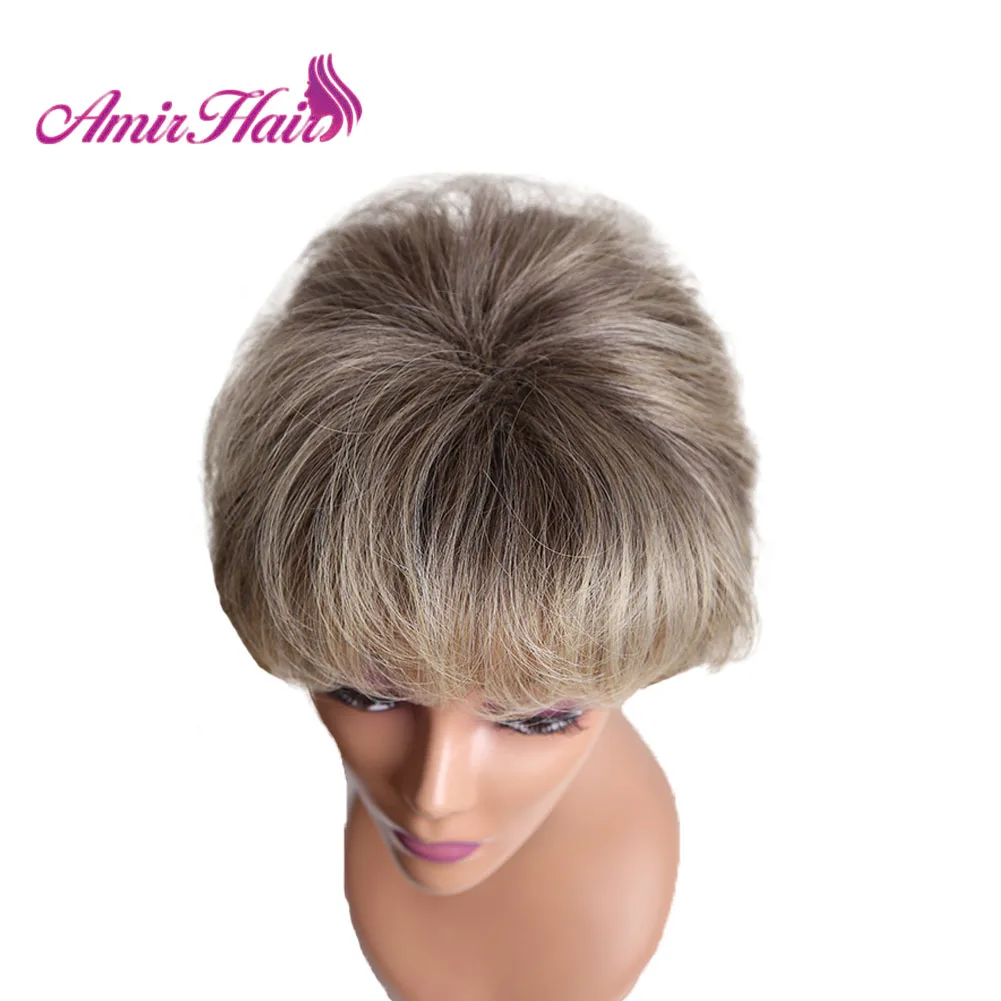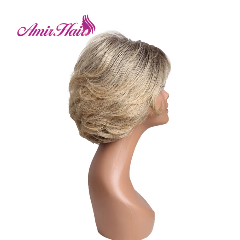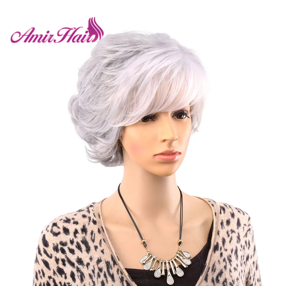 Амир короткий парик для женщин синтетические седые волосы кудрявые парики Мягкий бесклеевой блонд Омбре парик термостойкие волокна полные парики косплей